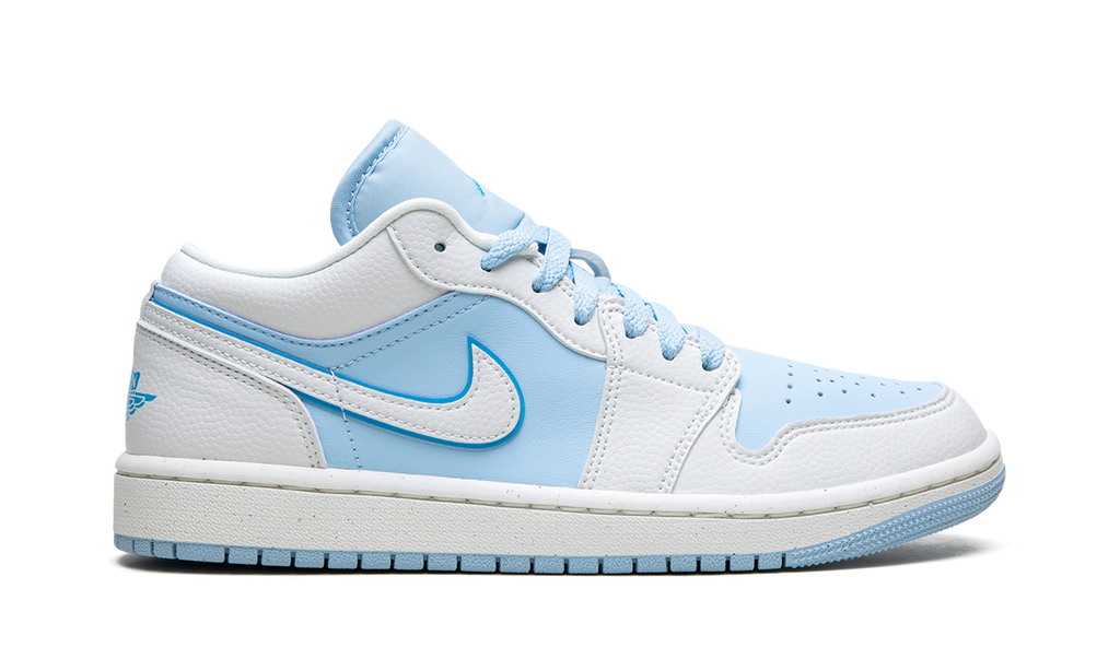 The Women’s Air Jordan 1 Low SE “Ice Blue” is a women’s-exclusive colorway of the low-top retro basketball shoe with a decidedly “UNC” inspired vibe. The shoe features an Ice Blue perforated leather toe, mid-panel, and nylon tongue. Contrasting white leather appears on the toe cap, forefoot, eyelets, and heel. A white leather Swoosh is found on the sides and Ice Blue “Wings” branding is embroidered on the heel. A blue Jumpman is stitched onto the tongue. Release date: January 9, 2023