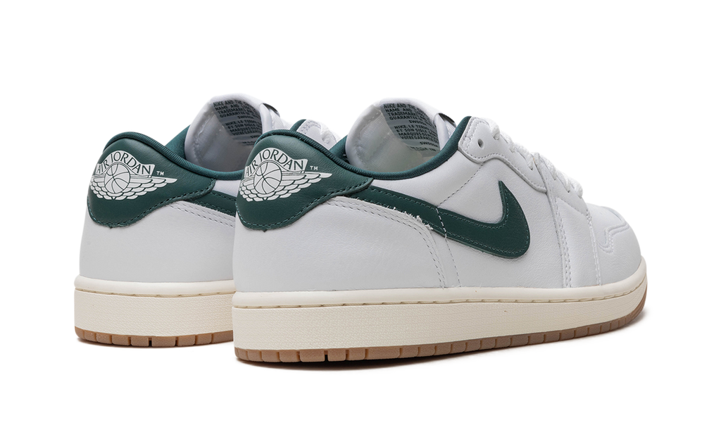Capture timeless style with the Jordan 1 Retro Low OG Wmns "Oxidized Green." This women's exclusive offers a refreshing, natural twist on the original low-cut icon. Clean white leather is elegantly contrasted by a unique oxidized green Swoosh and heel tab, giving it a slightly aged, vintage feel. Combining heritage-inspired design with a lightweight, cushioned feel, this sleek sneaker adds a sophisticated pop of color to any casual outfit.