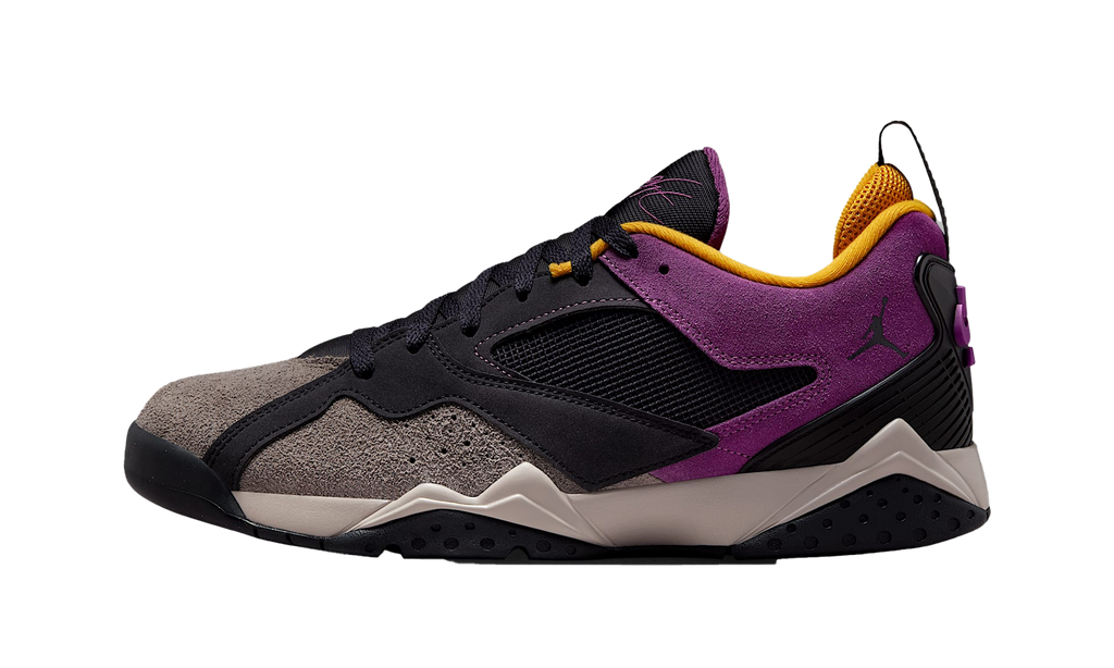 Unleash your inner MVP with the Jordan MVP 92 "Oil Grey Viotech." This low-top sneaker is a modern remix of the legendary Air Jordan 7, featuring the original's layered upper and iconic midsole. The design boasts a blend of high-quality materials, including velvety nubuck leather and soft suede in an "Oil Grey" and "Cave Stone" base. Vibrant "Viotech" purple accents on the heel and tongue, along with a "Dark Sulfur" lining, add an eye-catching splash of color. Comfort is key, with Nike Air technology and a foam midsole providing lightweight, responsive cushioning for everyday wear. This shoe is a perfect fusion of classic Jordan heritage and a bold, contemporary look.
