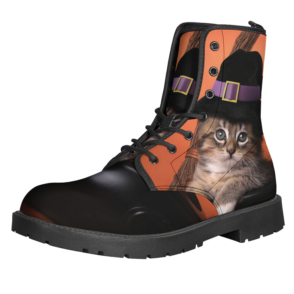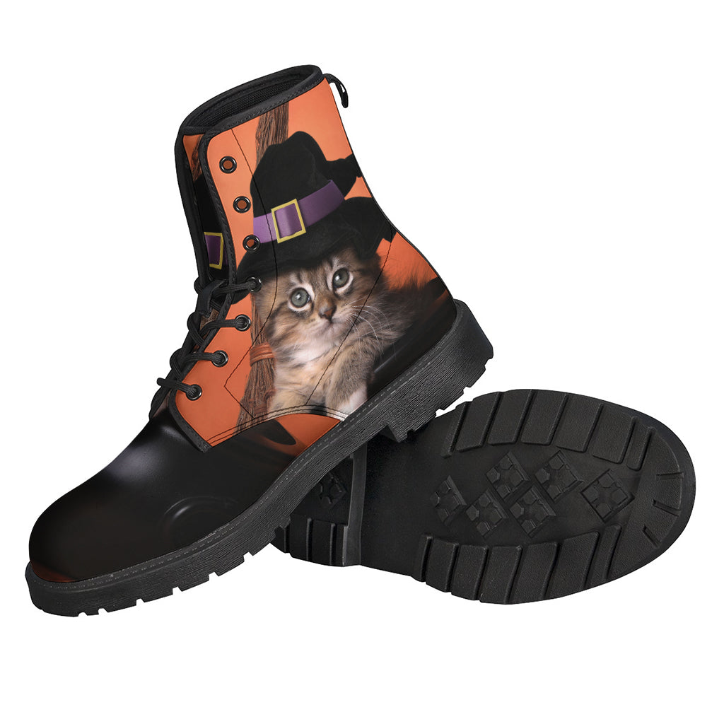 Embrace your inner free spirit with these Hippies Leather Lightweight Boots. Made from high-quality leather, these boots feature a unique Halloween Cute Witch Cat print that adds a touch of whimsy to your outfit. Perfect for festivals, concerts, or simply a day out on the town, these boots are comfortable, durable, and stylish. The lightweight design makes them easy to wear all day long, while the trendy hippie-inspired style is sure to make a statement wherever you go. Add a touch of retro charm to your wardrobe with these Hippies Leather Lightweight Boots.