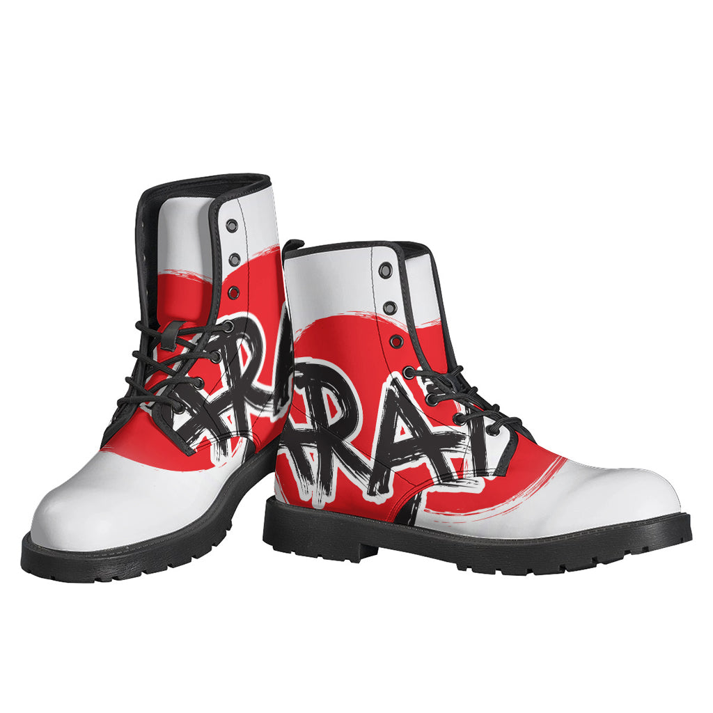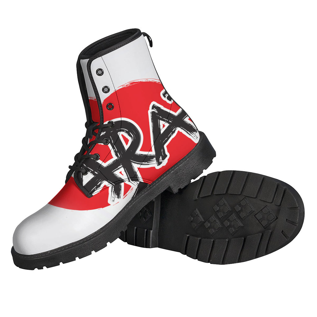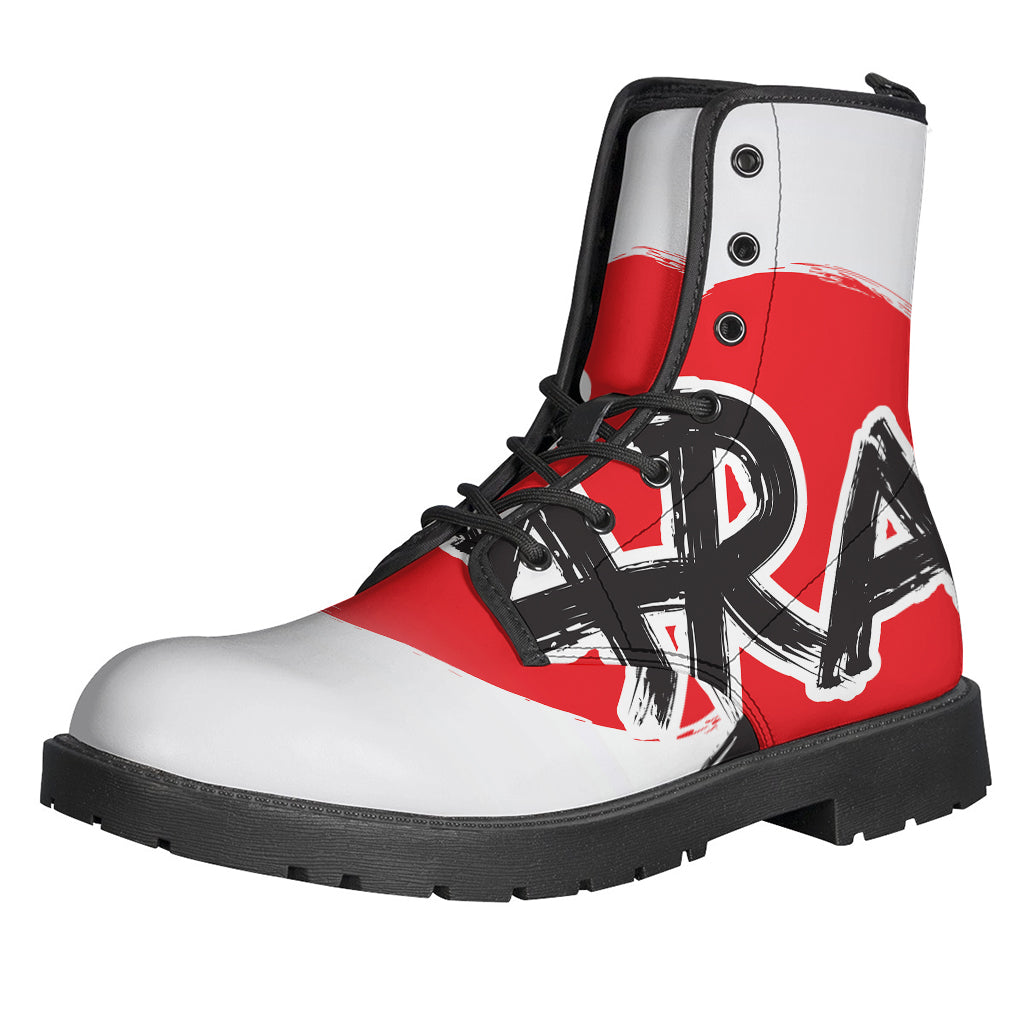 Karate Text Print Leather Boots: Channel Your Inner Hippie Style with Lightweight Comfort