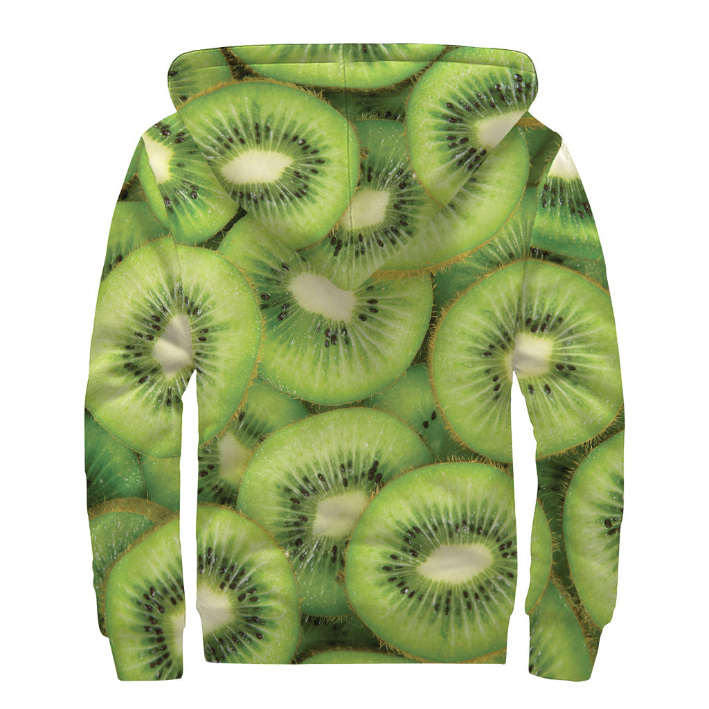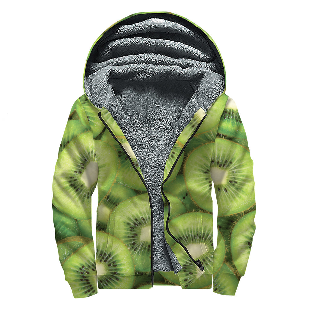 This Kiwi Slices Print Sherpa Lined Zip Up Hoodie is the perfect addition to any hippie's wardrobe. The vibrant and playful kiwi print adds a fun twist to a classic zip-up hoodie style. The sherpa lining provides extra warmth and comfort, making it ideal for chilly days and nights. This hoodie is perfect for those who embrace the hippie lifestyle and want to express their unique sense of style. Whether you're headed to a music festival, a day of hiking in nature, or just chilling with friends, this hoodie is sure to keep you cozy and looking cool.