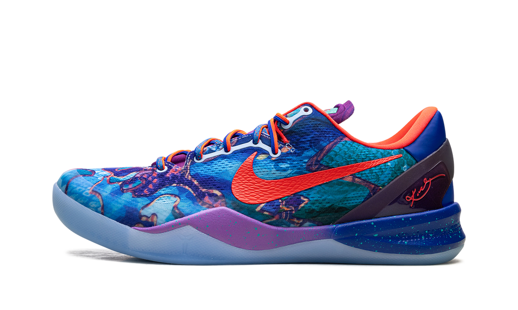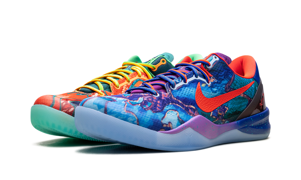 "A bold fusion of iconic colorways, the Nike Kobe 8 Protro ""What The"" celebrates the Mamba legacy with unmatched style. The ""What The"" colorway brings together some of the most renowned Kobe 8 colorways in the Los Angeles Lakers star's legacy. This sneaker delivers top-tier performance and eye-catching appeal. "