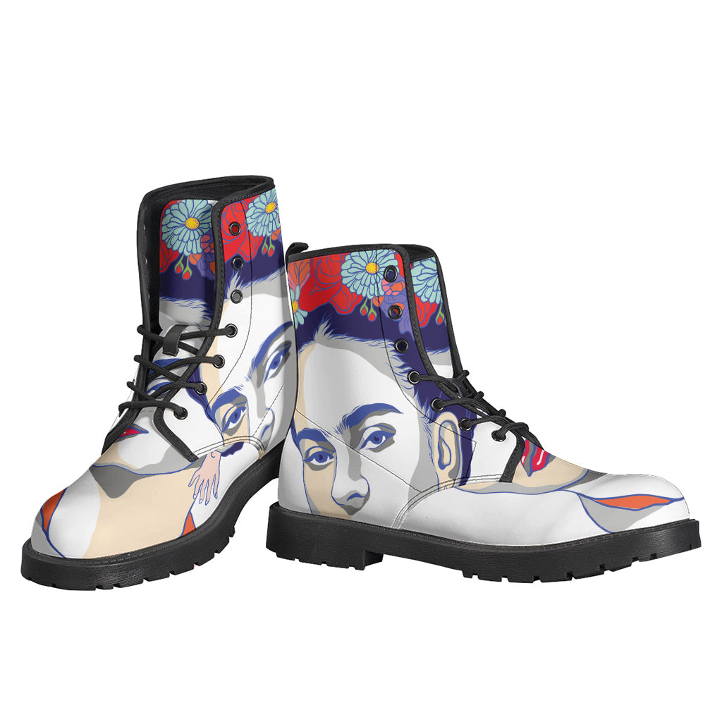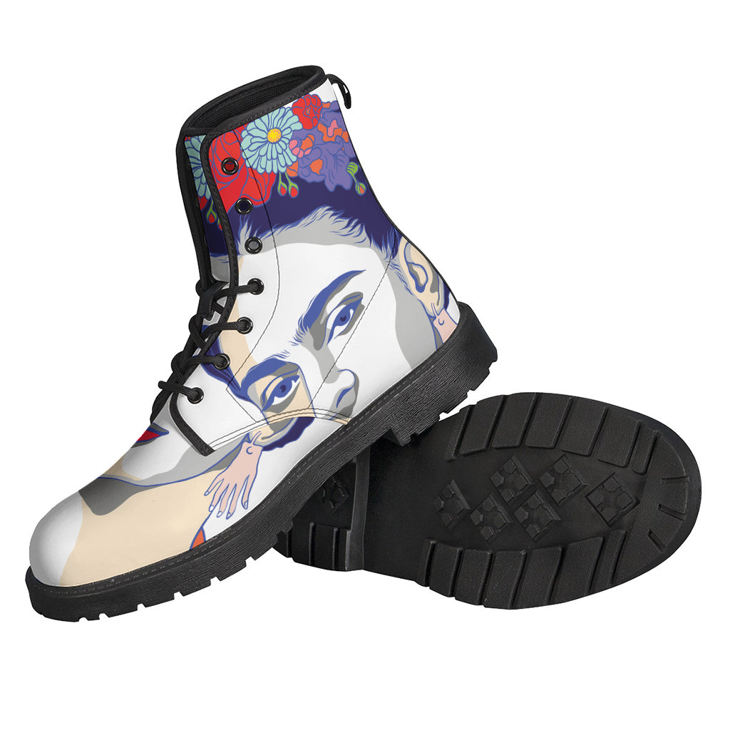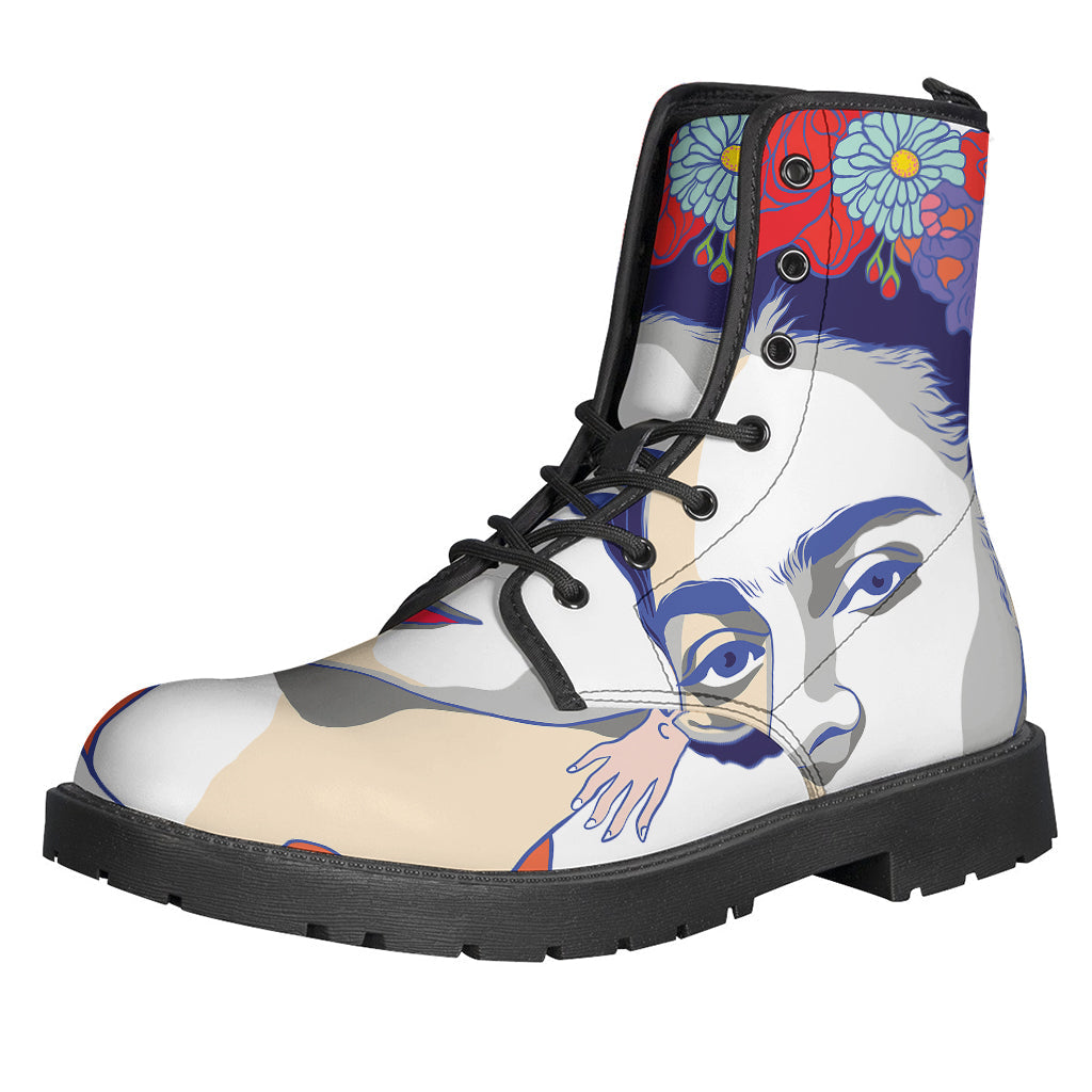 These Magdalena Carmen Frida Kahlo Print Leather Boots are perfect for those who love hippie style and want to make a statement with their footwear. The boots feature a unique Frida Kahlo print on the leather, adding a touch of artistry and personality to your outfit.