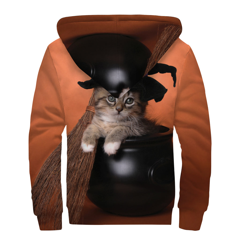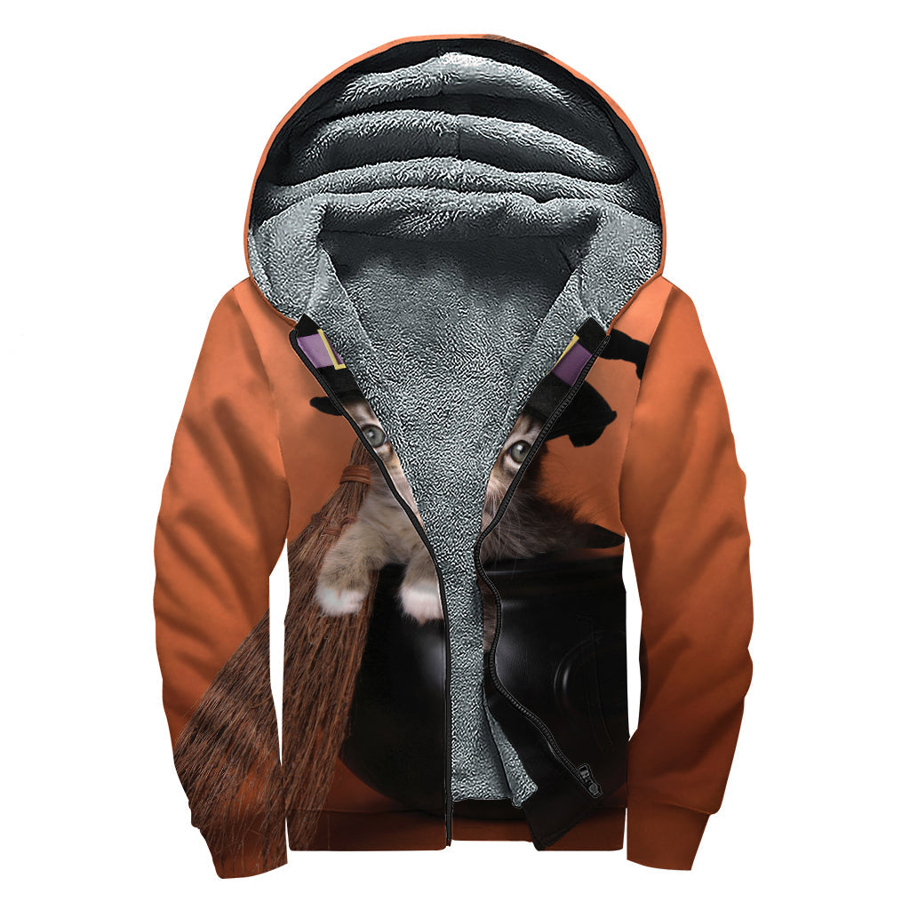 Get ready to embrace your inner hippie with this Sherpa Lined Zip Up Hoodie featuring a funky Halloween cute witch cat print. Made for those who love to stand out and make a statement, this hoodie is perfect for layering and adding a touch of retro charm to your wardrobe. The soft Sherpa lining will keep you warm and cozy while the zip up design makes it easy to throw on over your favorite t-shirt or tank top. Whether you're heading to a music festival, hitting the farmers market, or just hanging out with friends, this hoodie is sure to turn heads and spread good vibes wherever you go.