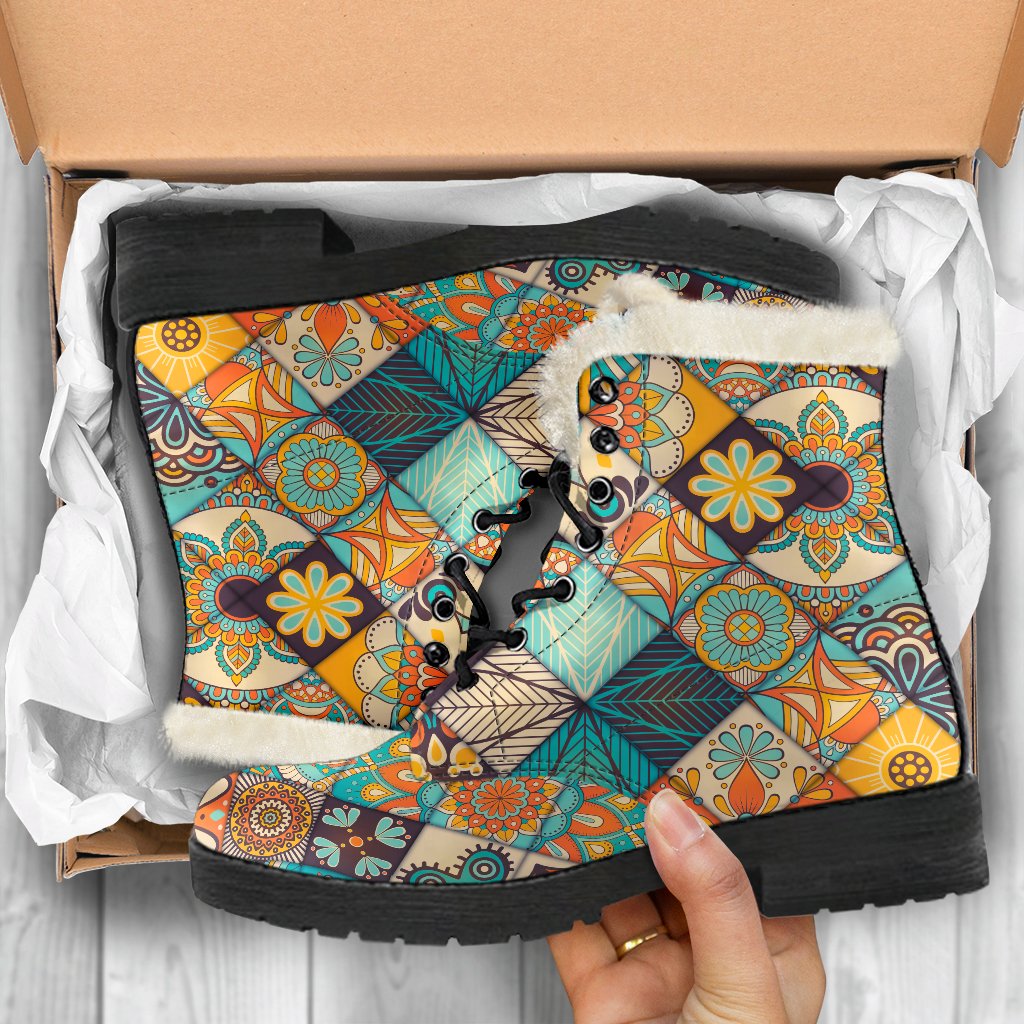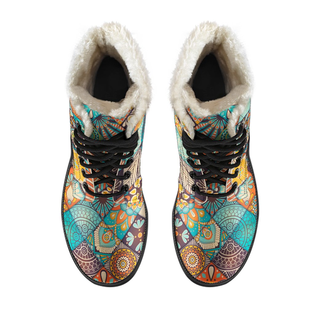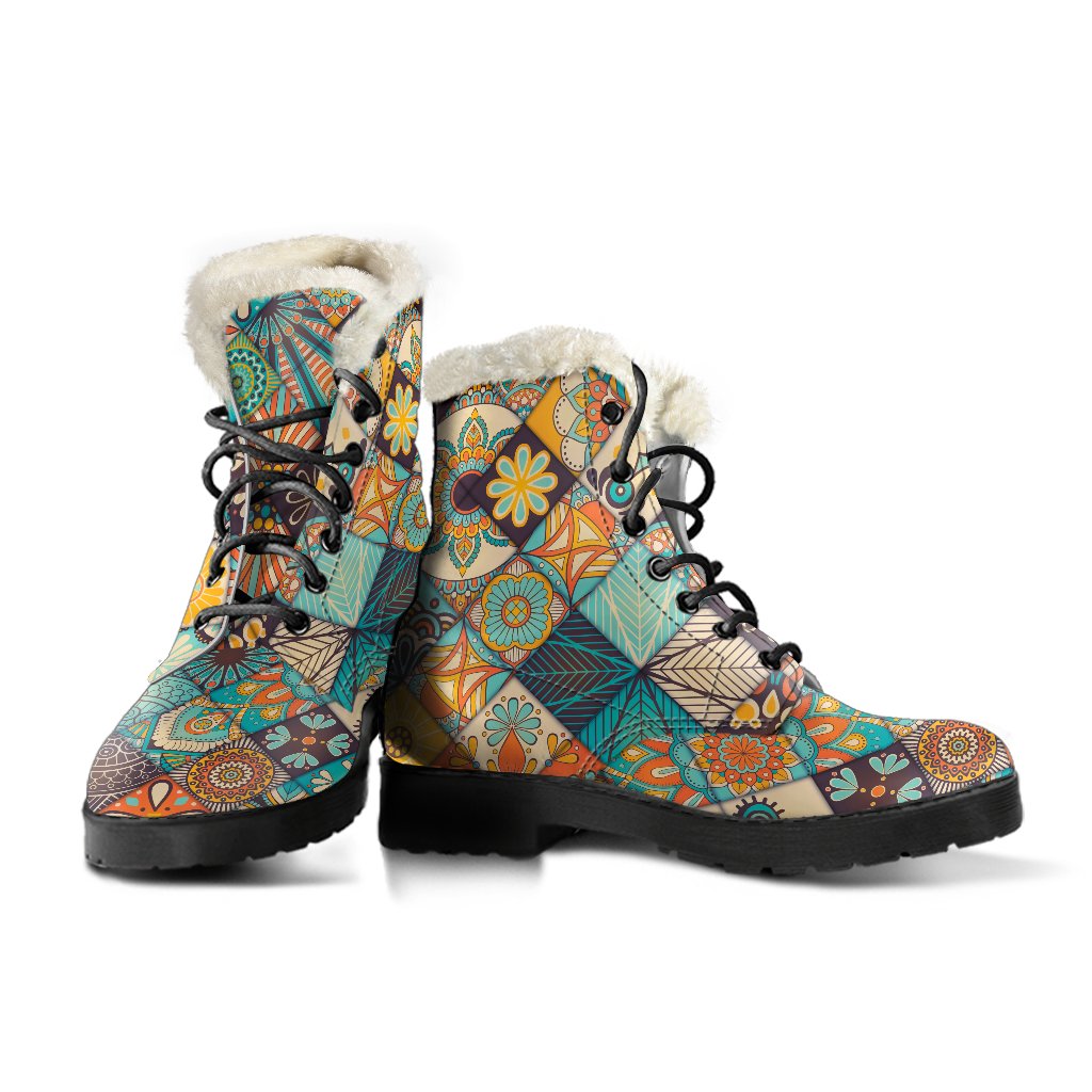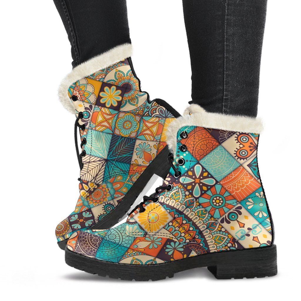 Embrace your inner hippie with these Vintage Mandala Bohemian Pattern Print Faux Fur Leather Boots from Gear Frost. These stylish boots feature a colorful mandala design that exudes bohemian vibes, perfect for adding a touch of retro flair to your wardrobe. The faux fur lining not only adds a cozy and comfortable element to the boots but also gives them a luxurious and trendy look. With a leather upper, these boots are durable and perfect for everyday wear. Whether you're heading to a music festival or simply want to elevate your street style, these boots are sure to make a statement. Step out in style and let your free spirit shine with these hippie-inspired boots.
