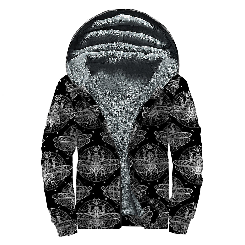 Mantis Spirit Animal Pattern Sherpa Lined Zip Up Hoodie - Embrace Your Inner Hippie Style