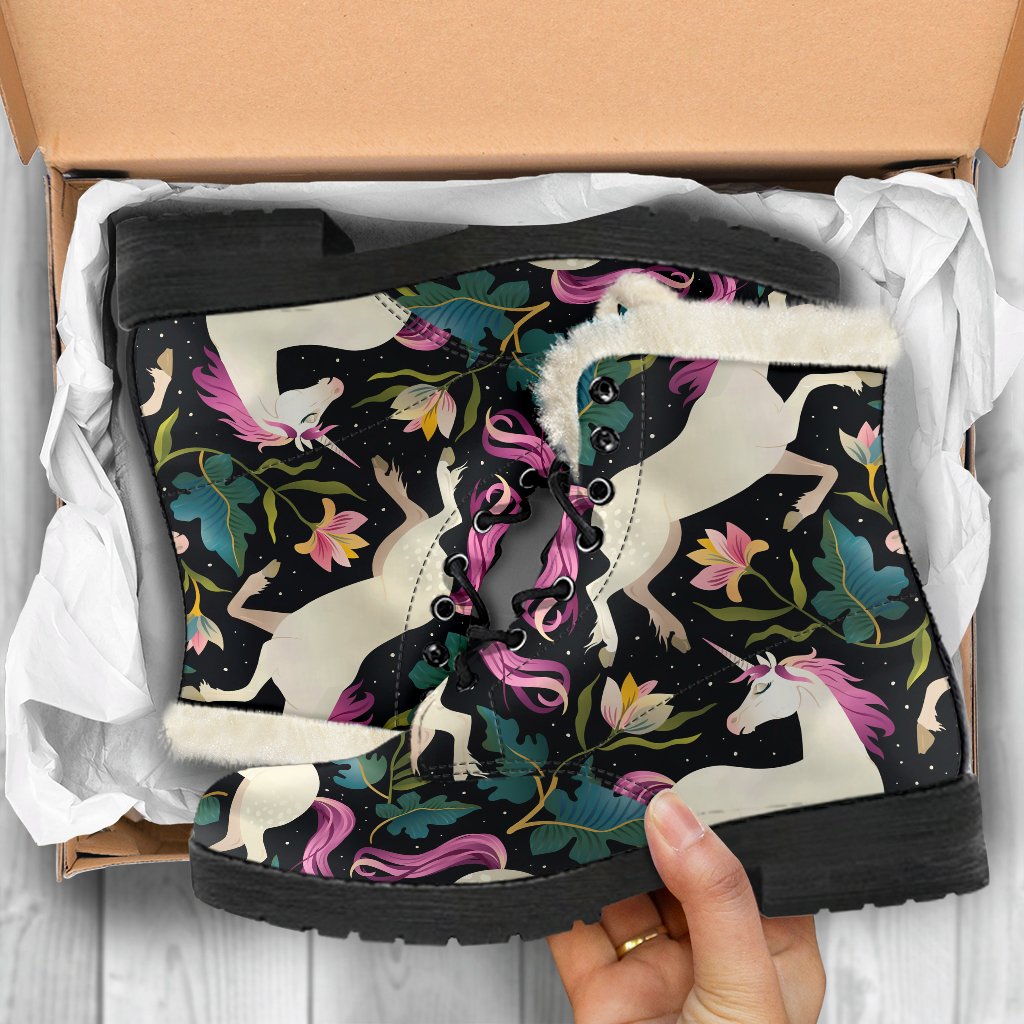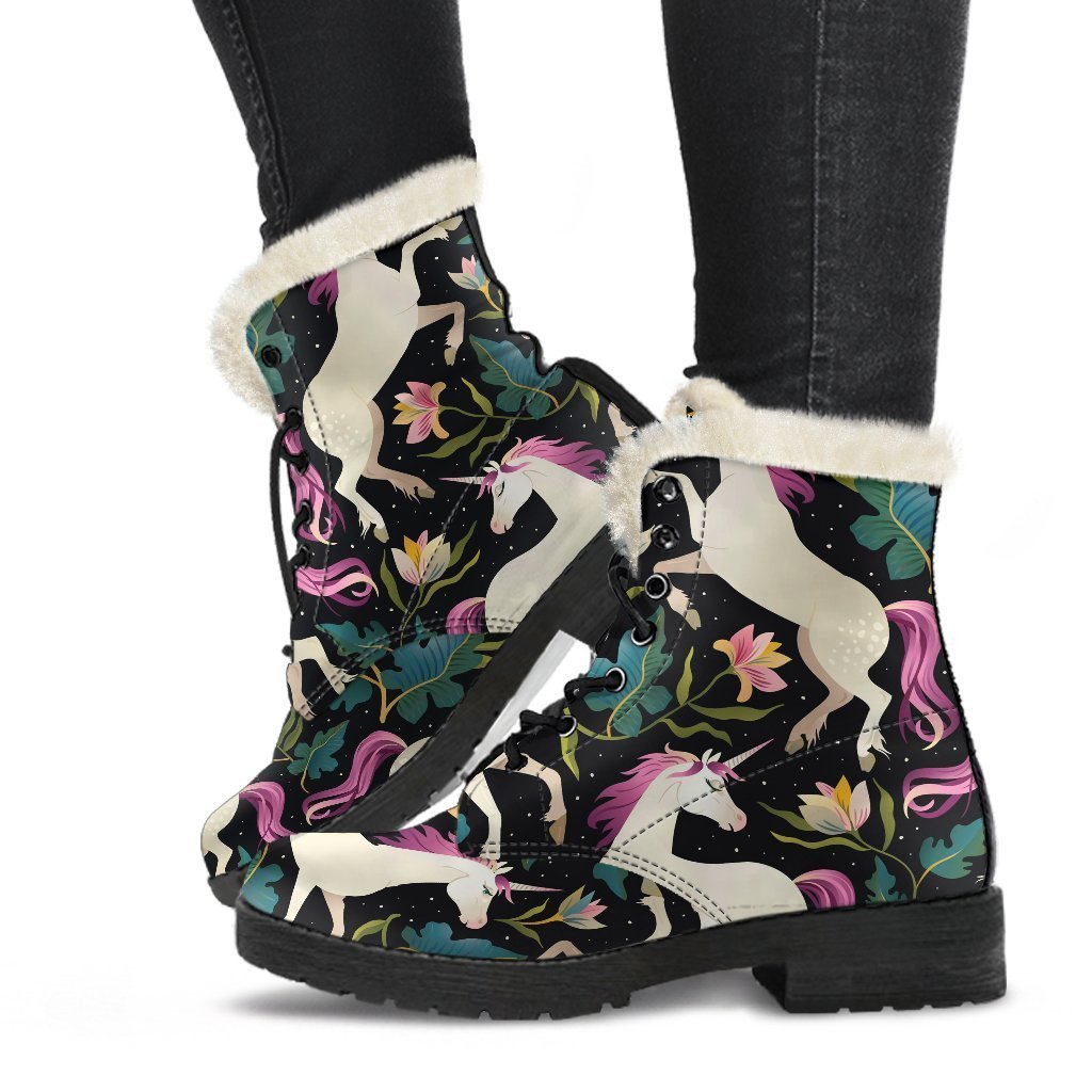Embrace your inner free spirit with these vibrant Night Floral Unicorn Pattern Print Faux Fur Leather Boots from GearFrost. These boots are the perfect accessory for any hippie-inspired outfit, with their unique unicorn and floral pattern that will make you stand out from the crowd. The faux fur lining adds a cozy touch while the leather exterior provides durability and style. Whether you're dancing at a music festival or just expressing your bohemian flair, these boots are sure to make a statement. So slip them on, feel the groove, and let your hippie spirit shine!