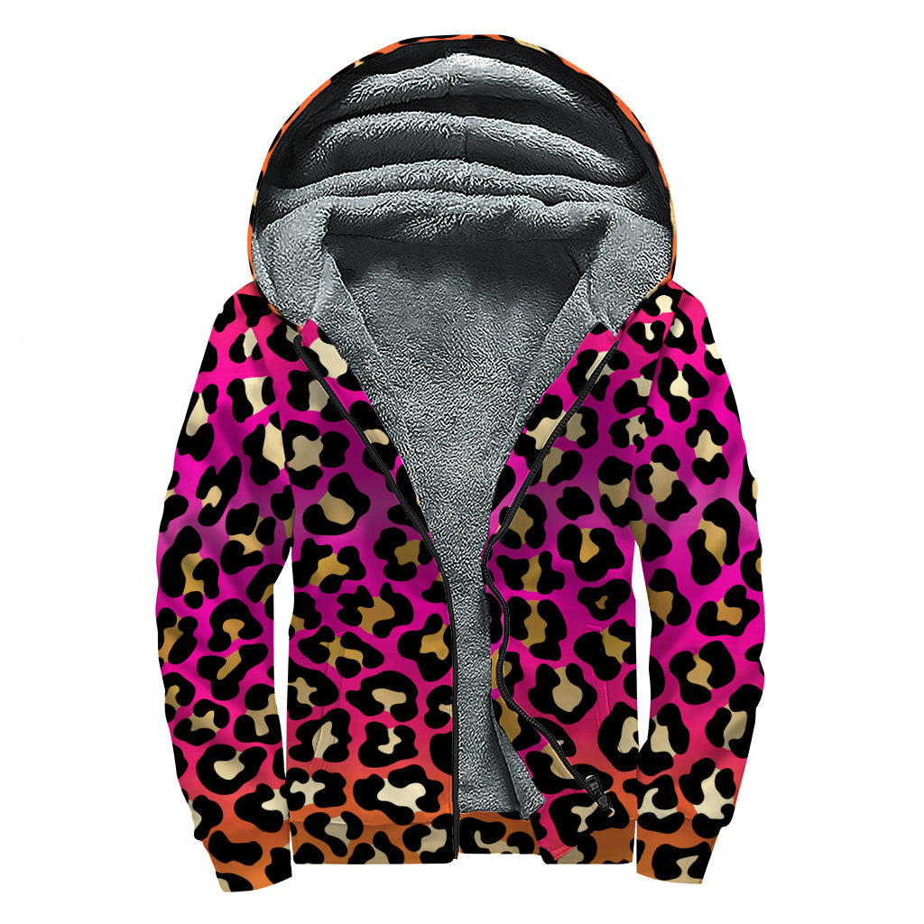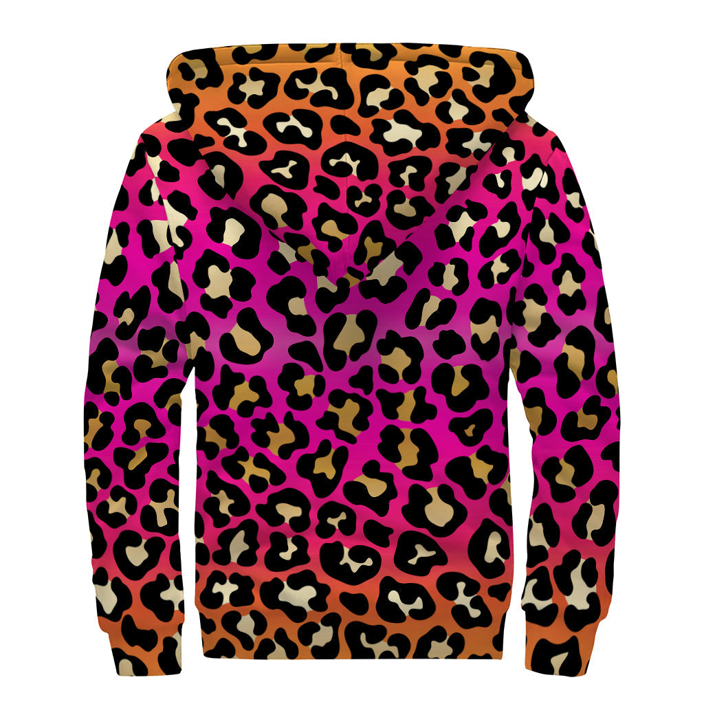 Get cozy and stylish with this Sherpa Lined Zip Up Hoodie designed for the free-spirited hippie at heart. The vibrant orange and purple leopard print adds a fun and funky touch to your outfit, while the plush sherpa lining keeps you warm and comfortable. The zip-up design makes it easy to throw on for chilly days or nights around the campfire. Embrace your inner bohemian with this unique and eye-catching hoodie that will surely turn heads wherever you go. Perfect for adding a pop of color and personality to your wardrobe.
