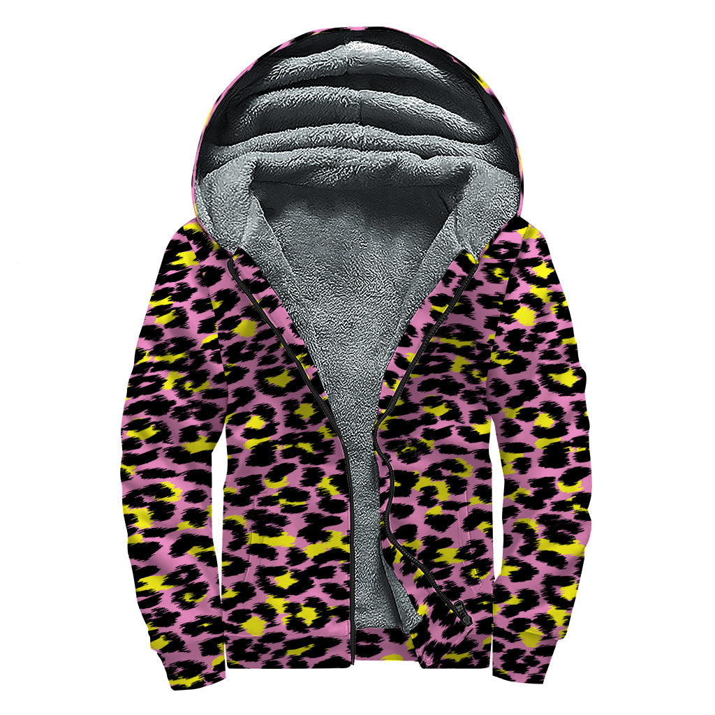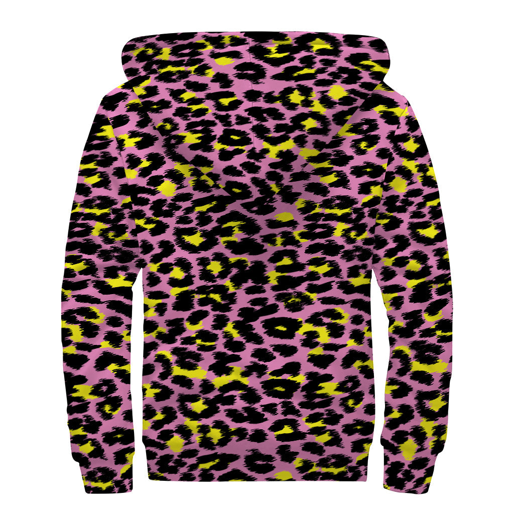 This Pink and Yellow Leopard Print Sherpa Lined Zip Up Hoodie is the ultimate statement piece for any hippie fashion lover. The vibrant colors and bold leopard print pattern are guaranteed to turn heads wherever you go. The cozy sherpa lining ensures maximum comfort and warmth, making it perfect for chilly days and nights. The zip-up design and hood make it easy to layer over your favorite boho tops and dresses. Embrace your inner free spirit and add a touch of retro flair to your wardrobe with this trendy hippie Sherpa lined hoodie.