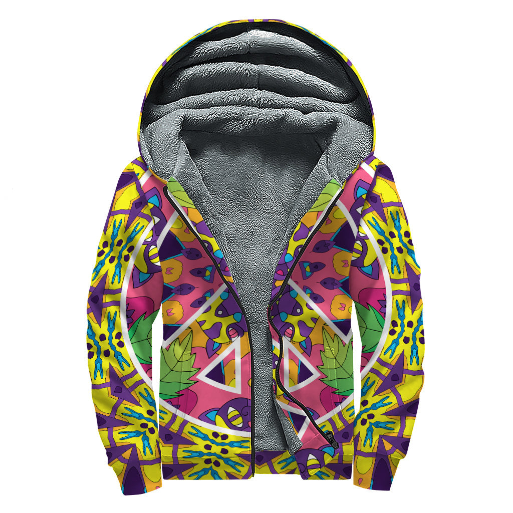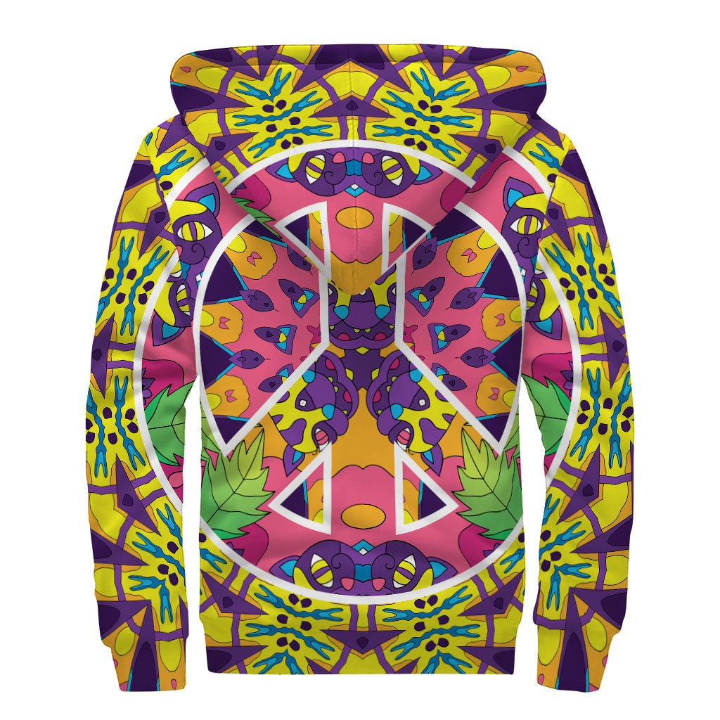 Embrace your inner free spirit with this unique Psychedelic Hippie Peace Sign Print Sherpa Lined Zip Up Hoodie. Perfect for chilly days and nights, this cozy hoodie features a vibrant psychedelic peace sign print that channels the laid-back vibes of the 1960s. The plush sherpa lining provides extra warmth and comfort, while the zip-up design allows for easy layering. Whether you're heading to a music festival, going for a nature walk, or just relaxing at home, this hoodie is sure to keep you feeling groovy in style. Stand out from the crowd and spread good vibes with this one-of-a-kind piece.