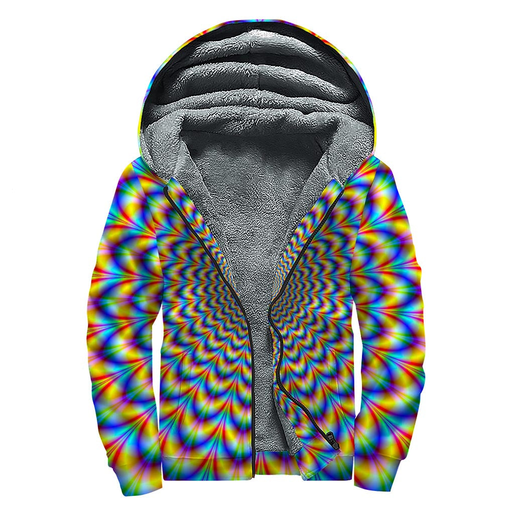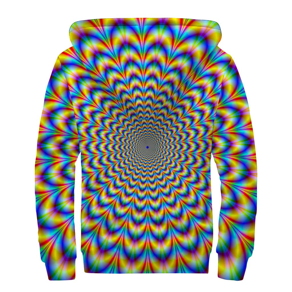 Keep cozy and spread good vibes in this psychedelic wave optical illusion Sherpa lined zip-up hoodie. This funky and colorful hoodie is perfect for modern-day hippies who love embracing a bohemian style. The soft Sherpa lining will keep you warm and comfortable, while the unique psychedelic wave design will make you stand out in a crowd. Whether you're heading to a music festival or just hanging out with friends, this hoodie is sure to bring some peace and love to your wardrobe.
