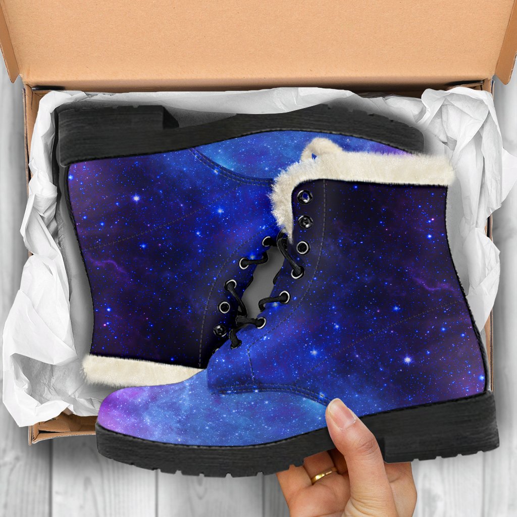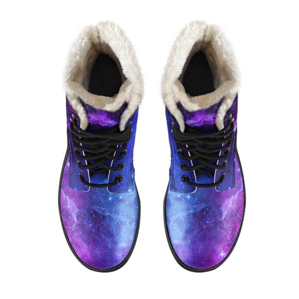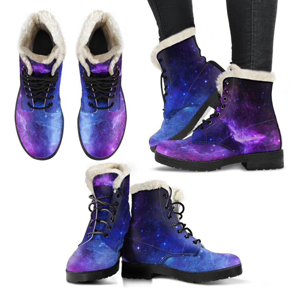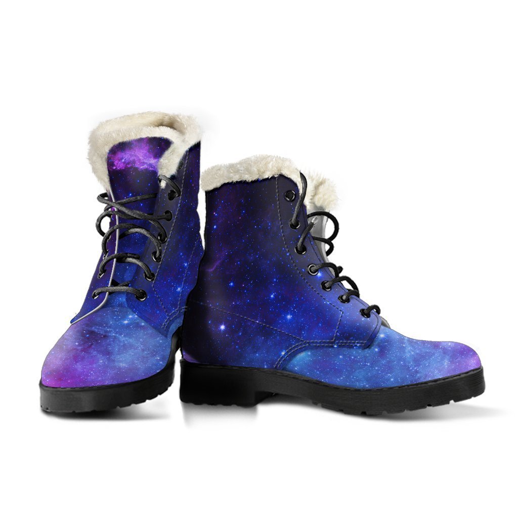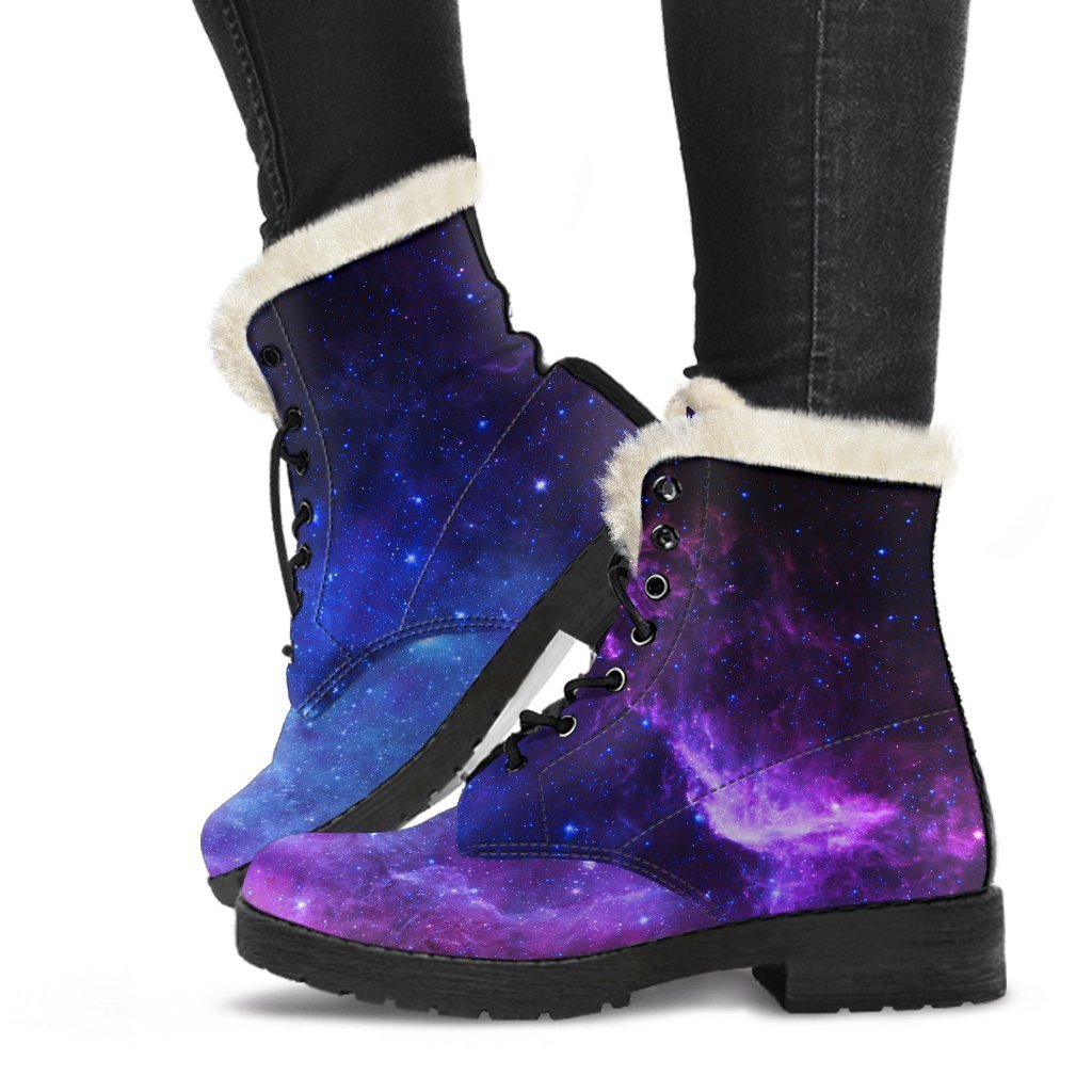 Step out in style with these Purple Galaxy Space Blue Starfield Print Faux Fur Leather Boots. These boots are designed for the free-spirited and fashion-forward hippies who love to stand out from the crowd. The vibrant galaxy print adds a unique touch to your outfit, while the faux fur lining keeps your feet cozy and warm. The faux leather material is durable and easy to clean, making these boots a versatile and practical addition to your wardrobe. Whether you're dancing at a music festival or exploring the great outdoors, these boots will keep you comfortable and stylish all day long.