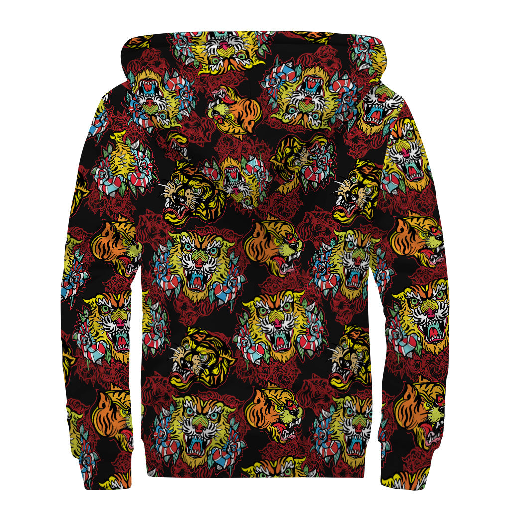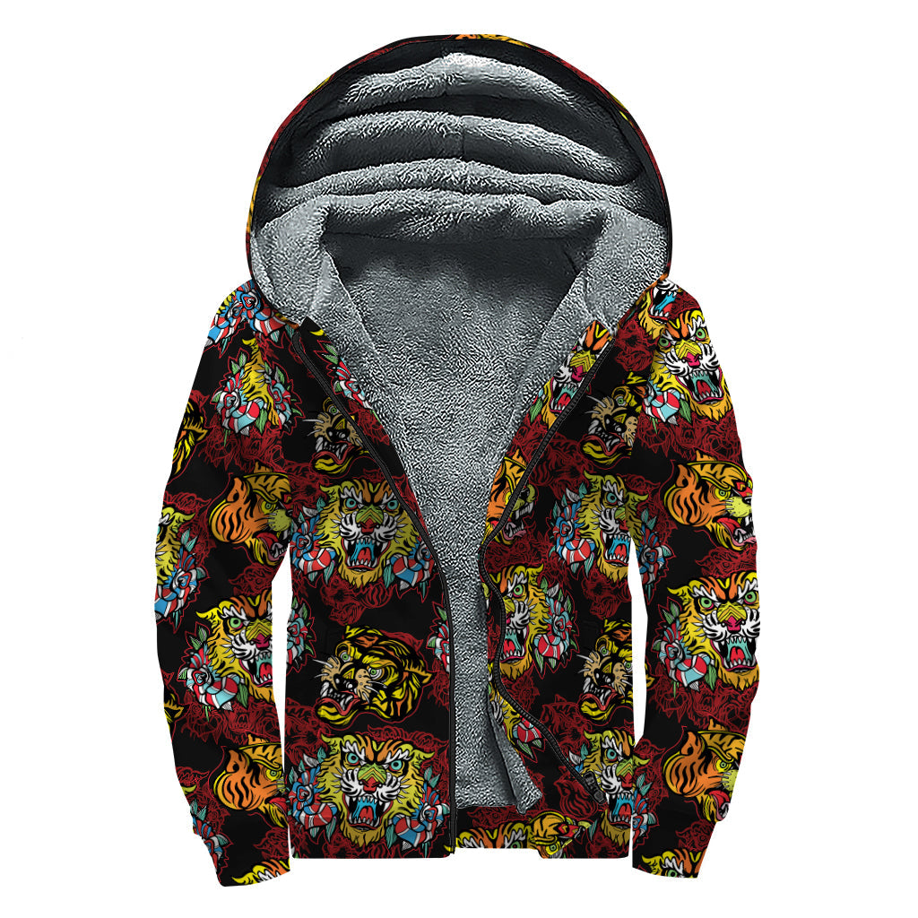 Get cozy and stay stylish in this Hippies Sherpa Lined Zip Up Hoodie, featuring a unique red tiger tattoo pattern print design. Perfect for those who love to embrace the free-spirited and laid-back hippie style, this hoodie is made for those who want to stand out from the crowd. The Sherpa lining ensures maximum comfort and warmth, making it ideal for chilly days and nights. Whether you're heading to a music festival or just hanging out with friends, this hoodie is sure to become a staple in your wardrobe. Add a touch of bohemian flair to your look with this eye-catching and comfortable zip-up hoodie.