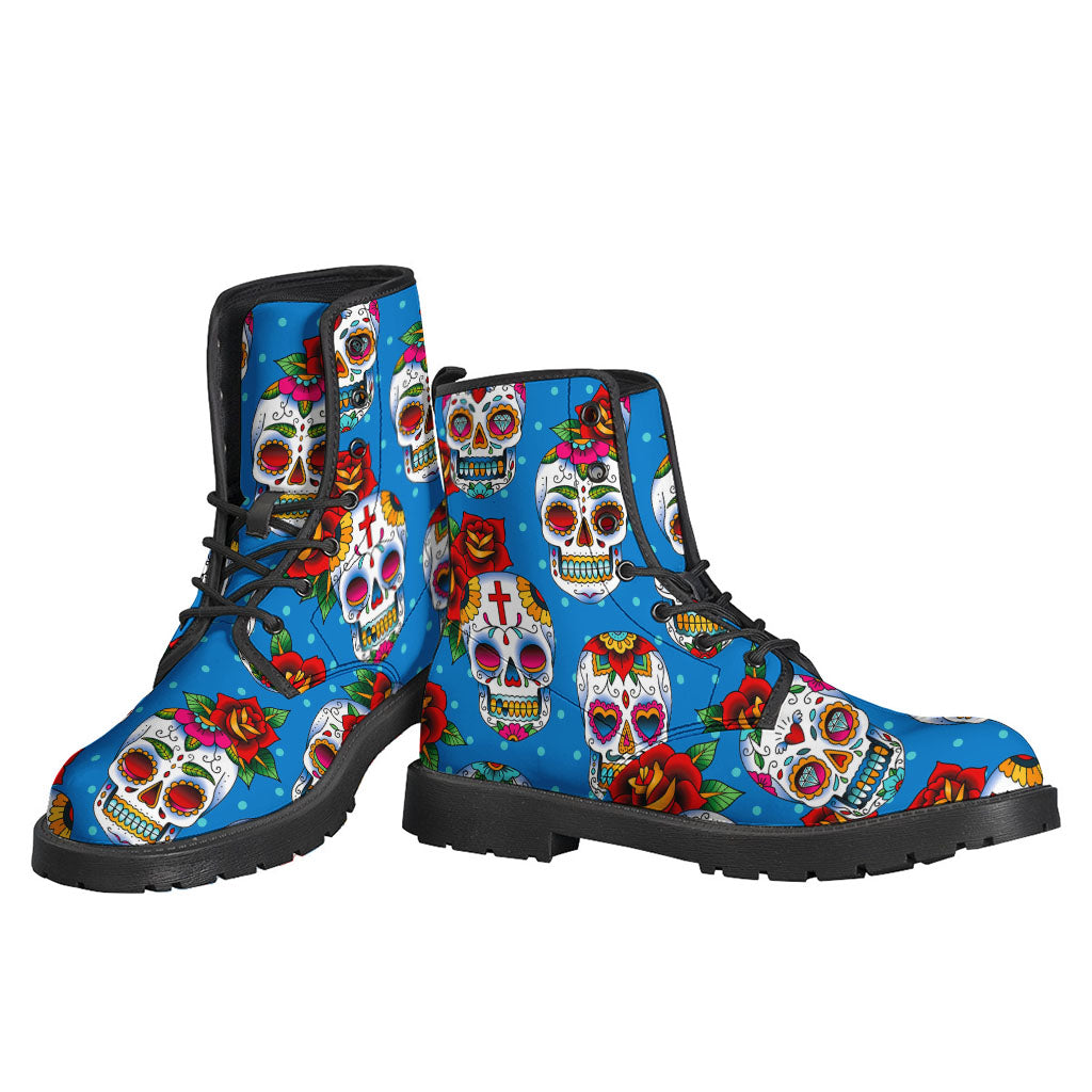 Rose Sugar Skull Lightweight Leather Boots: The Hippie's Choice - 1