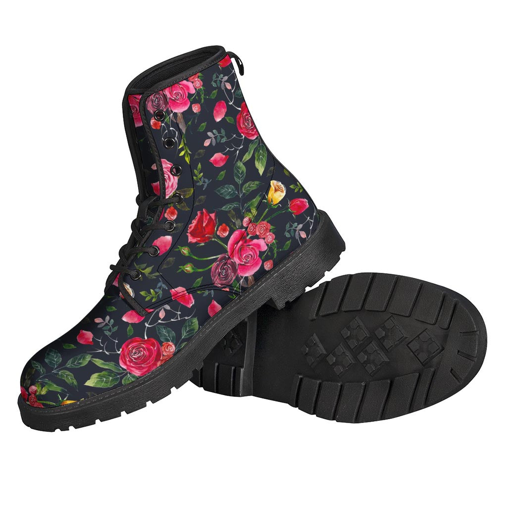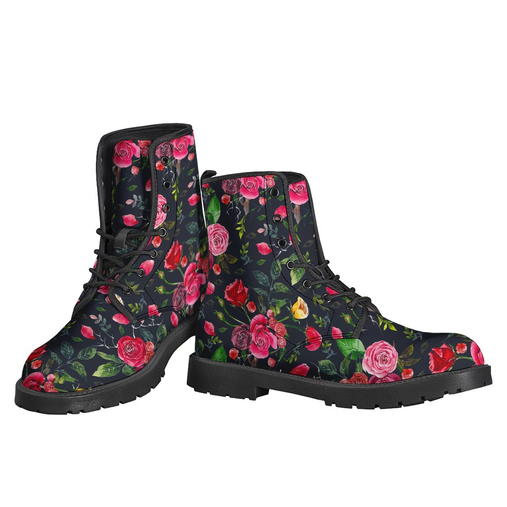 Embrace your inner flower child with these Roses Floral Flower Pattern Print Leather Boots from Gear Frost. These lightweight boots are perfect for hippies and free spirits who want to add a touch of bohemian flair to their outfit. The gorgeous floral pattern print on the leather material gives off a retro vibe, while the comfortable design makes them ideal for all-day wear. Whether you're heading to a music festival or just looking to add some groovy style to your everyday look, these hippie boots are sure to make a statement. Available in a variety of sizes, these boots are a must-have for anyone who loves to express themselves through fashion.