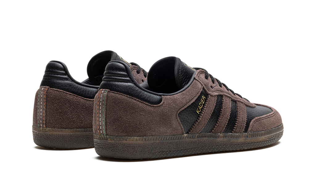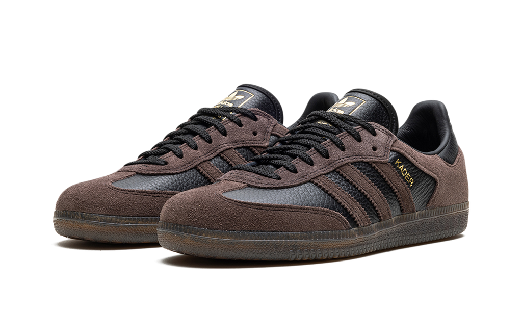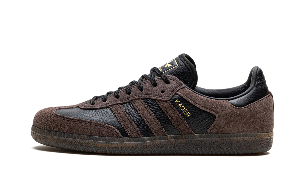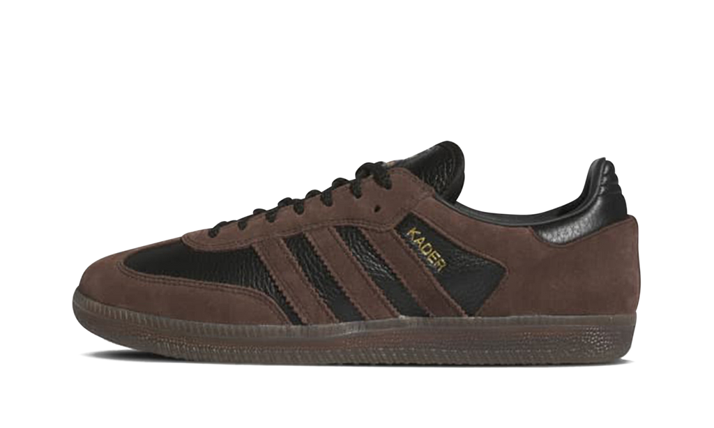 The adidas Samba ADV "Kader Sylla" is a collaboration between the professional skateboarder and adidas on a skate-ready version of the retro shoe. Modified specifically for skateboarding, the Samba ADV for Kader features a black tumbled leather base with brown suede overlays on the forefoot and heel, as well as on the Three Stripes branding. A “Kader” logo appears in gold foil next to the Three Stripes on the lateral side of the shoe. Underfoot, the gum rubber sole provides traction for optimal board feel or casual daily wear. Release date: February 10, 2024