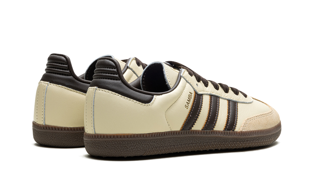 Step into legendary style with the Adidas Samba OG 'Cream White / Dark Brown'. This iconic sneaker is a versatile essential, boasting a premium cream white leather upper complemented by rich dark brown serrated Three Stripes and heel tab. The classic suede T-toe design and durable gum rubber outsole ground the look in timeless sport heritage. Embrace the retro cool and elevate your rotation with a sophisticated, wearable colorway that effortlessly transitions from the pitch to the pavement.