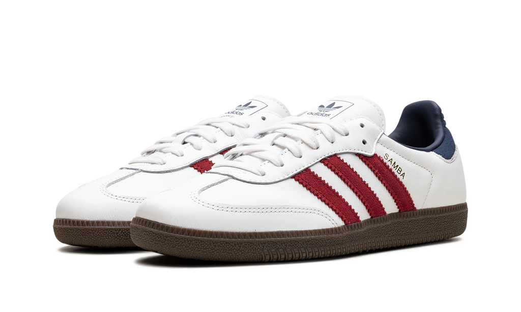 Step into a timeless look with the legendary Adidas Samba OG, the "Iconic Trainer," presented in the striking "Team Victory Red Night Indigo" colorway. This sneaker boasts a premium construction, featuring the classic suede T-toe and a rich Team Victory Red upper contrasted by crisp Night Indigo accents. The signature gum rubber outsole provides heritage style and reliable grip, making this a versatile shoe for any casual outing. Elevate your everyday style with a piece of footwear history that feels both fresh and classic.