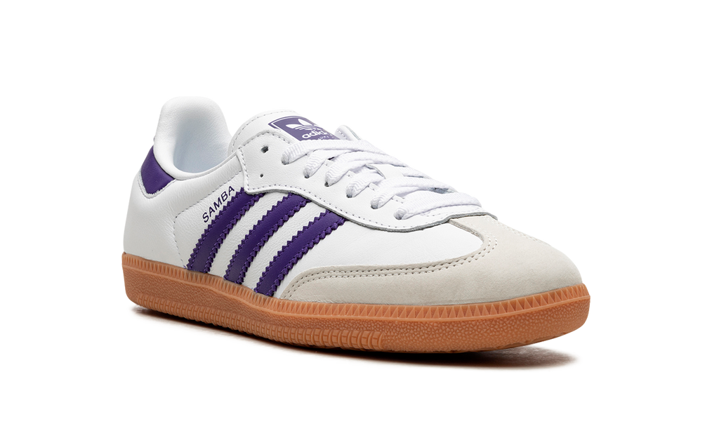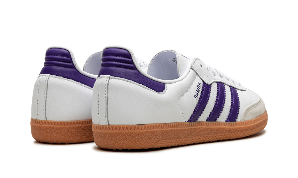 The Women’s adidas Samba OG “White/Energy Ink” is a colorway of the retro sneaker with an eye-pleasing, two-tone color block. The Samba in “Energy Ink” features a white leather base and rich purple leather Three Stripes branding on the sides. A gold foil “Samba” logo appears on the lateral side of the midfoot. Classic “adidas” detailing can be found on the tongue. A gum sole rounds out the clean look. Release date: November 19, 2023