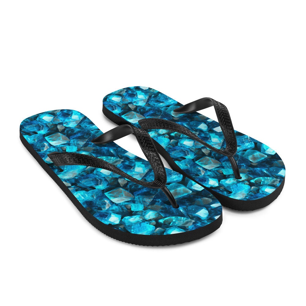 Emerald Blossoms - Serene Blue Apatite Summer Flip Flops