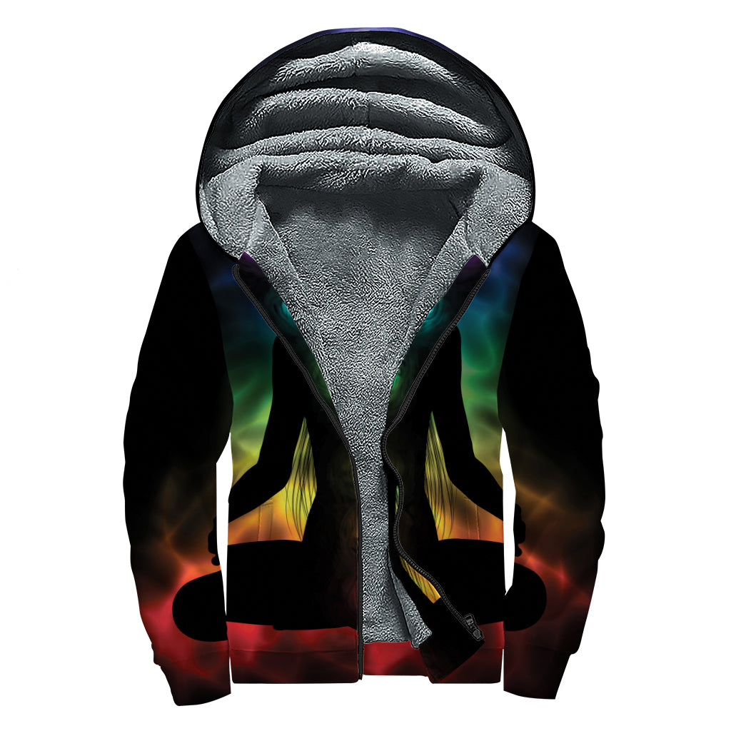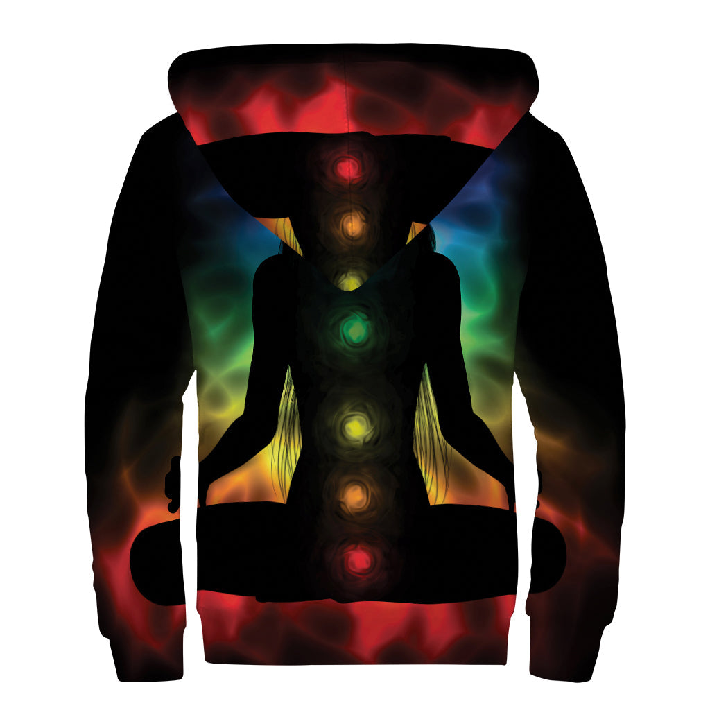 Seven Chakras Aura Print Sherpa Lined Zip Up Hoodie: Embrace Your Inner Hippie Style