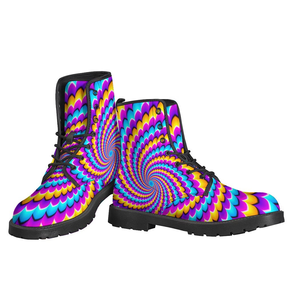 Spiral Colors Moving Optical Illusion Leather Boots: A Hippie's Dream