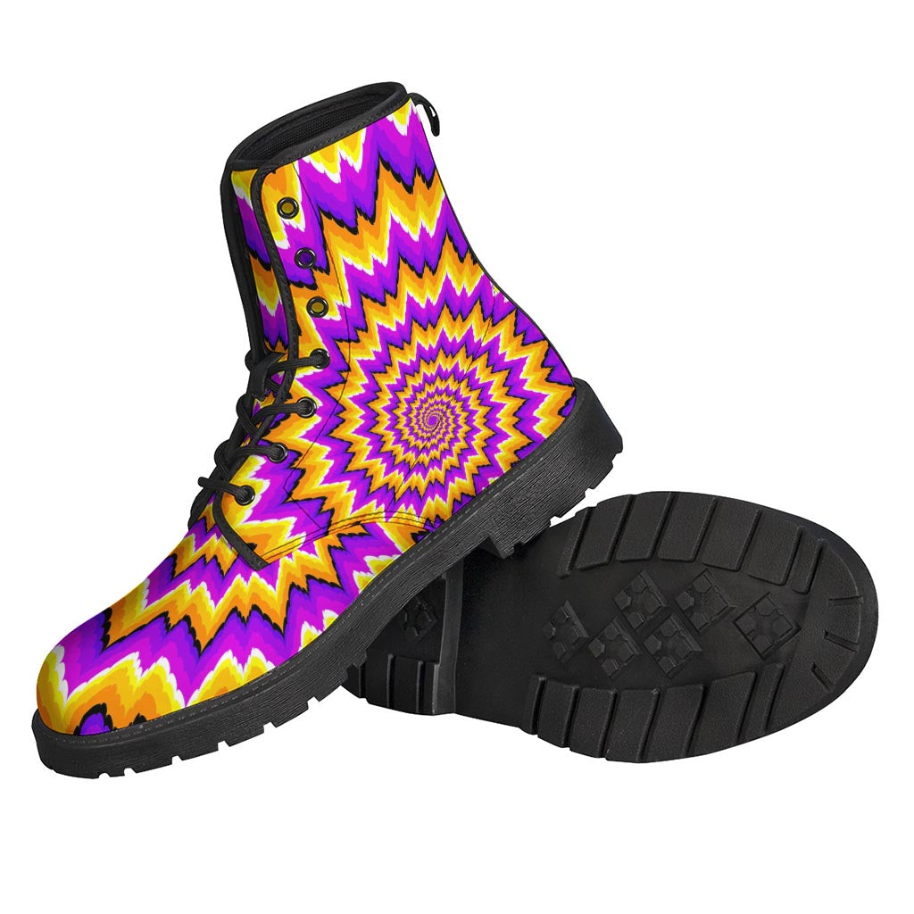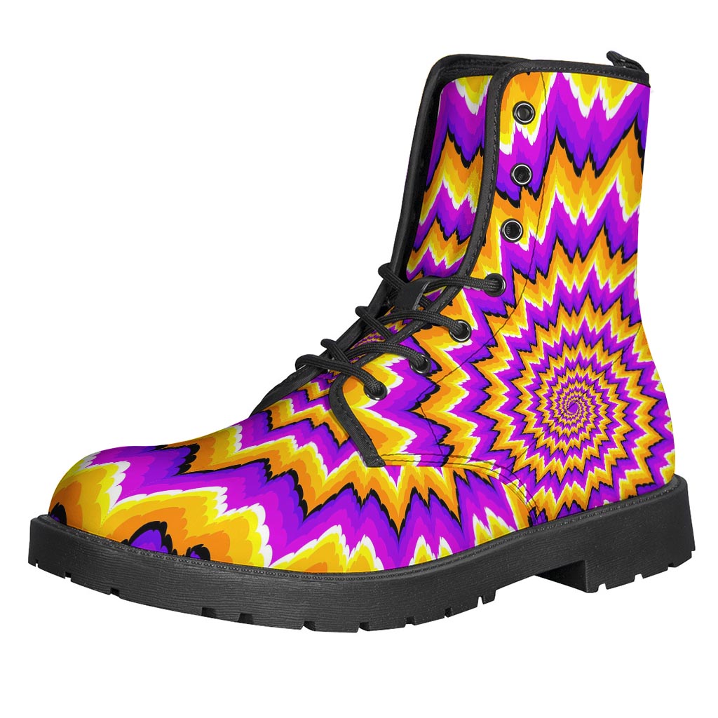 These hippie-inspired Leather Lightweight Boots are the perfect blend of style and comfort for the free-spirited fashionista. The unique spiral expansion moving optical illusion design on the boots adds a touch of whimsy and creativity to any outfit. Made from high-quality leather, these boots are durable and sturdy, perfect for long days of exploring or dancing at music festivals. With a lightweight construction, these boots are easy to wear and will keep your feet comfortable all day long. Add a touch of bohemian flair to your wardrobe with these stylish and eye-catching boots. Perfect for those who march to the beat of their own drum, these Leather Lightweight Boots are sure to turn heads wherever you go.