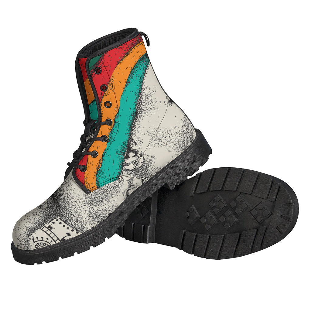 Embrace your inner hippie with these stylish Leather Lightweight Boots featuring a unique Ethnic African Girl print design. These boots are the perfect combination of comfort and style, making them ideal for any casual outing or music festival. The boots are made from high-quality leather, ensuring durability and long-lasting wear. With a lightweight construction and a trendy print, these boots are sure to be a standout piece in your wardrobe. Add a touch of bohemian flair to your look with these Hippies Leather Lightweight Boots.