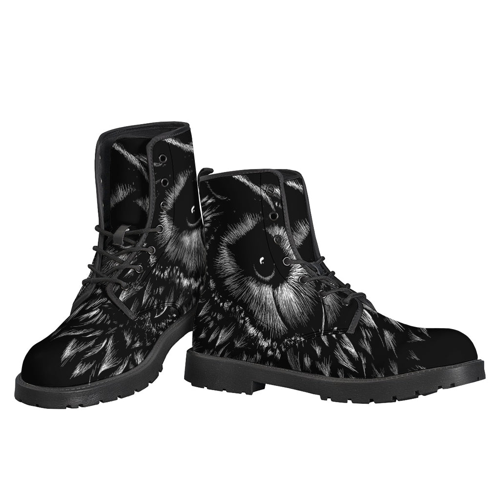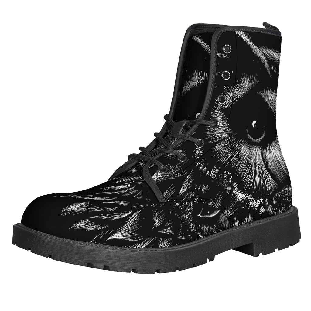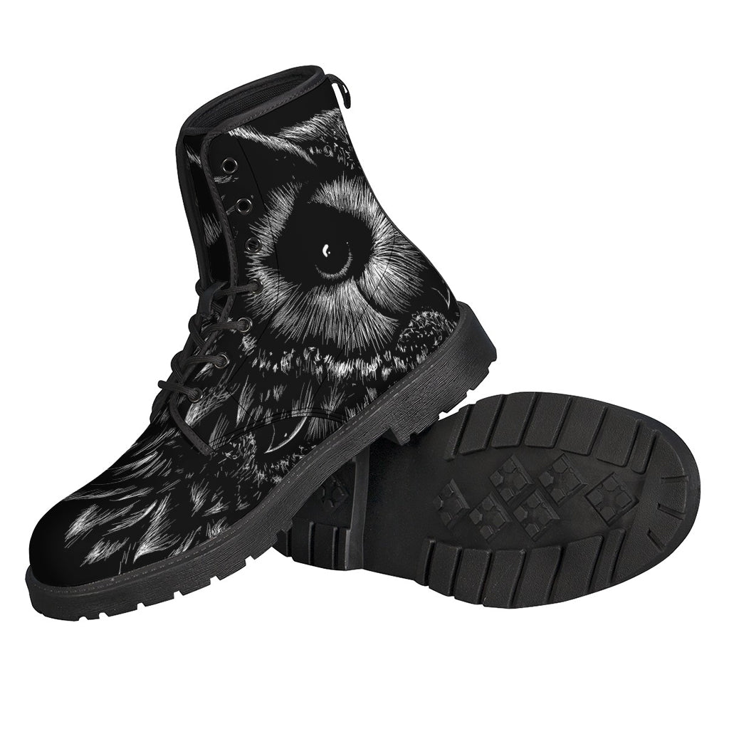 Step out in style with these groovy Leather Lightweight Boots, perfect for the modern hippie! The black and white owl print adds a whimsical touch to these comfortable and versatile boots. The lightweight design makes them perfect for all-day wear, while the durable leather construction ensures long-lasting quality. Whether you're heading to a music festival, a hike in the woods, or just hanging out with friends, these boots are sure to become your go-to footwear choice. Embrace your inner hippie spirit with these stylish and unique Leather Lightweight Boots!