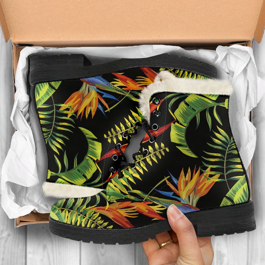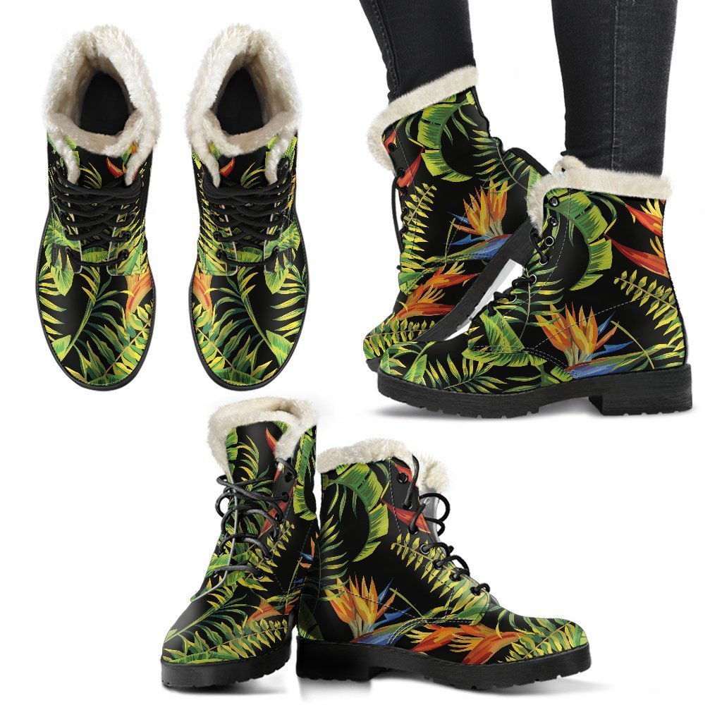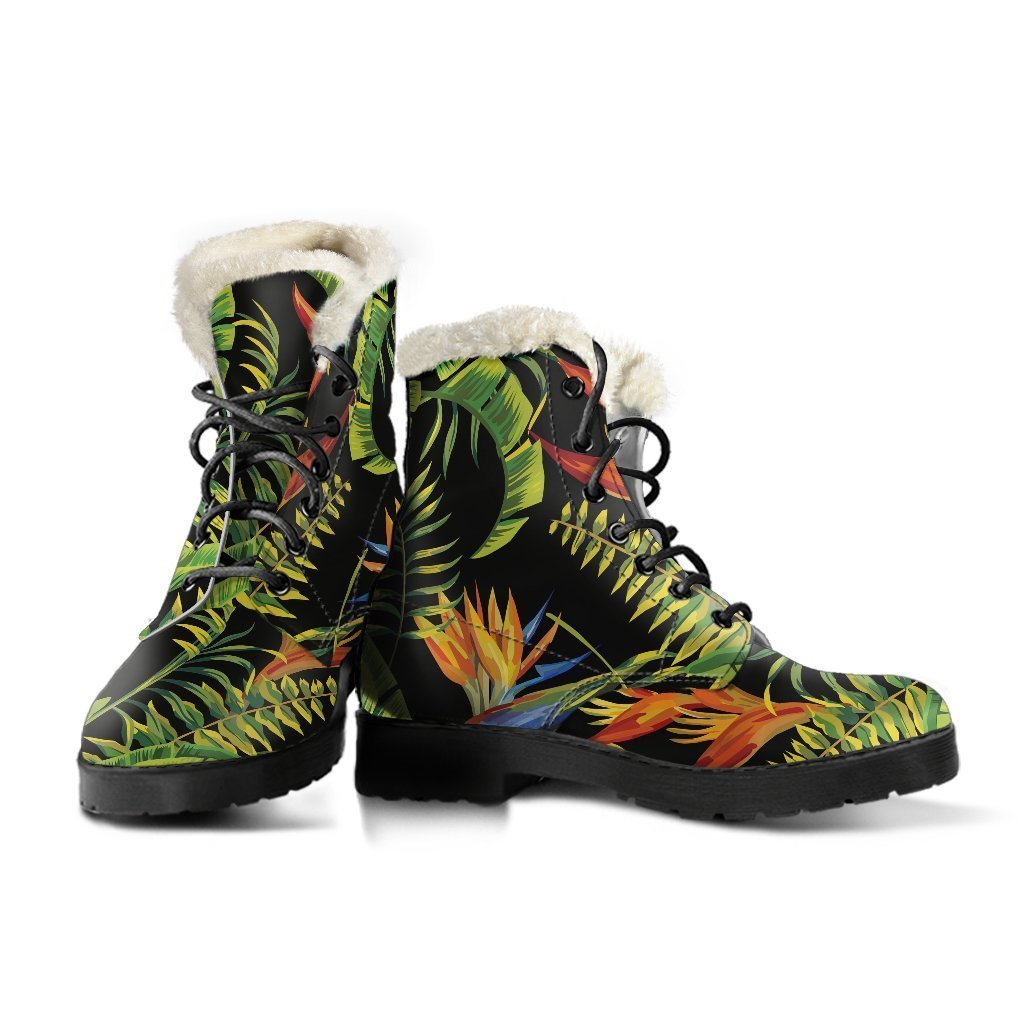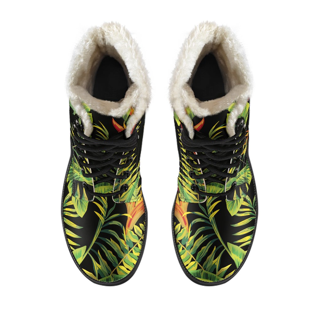 Step Out in Style with Tropical Summer Pattern Faux Fur Leather Boots