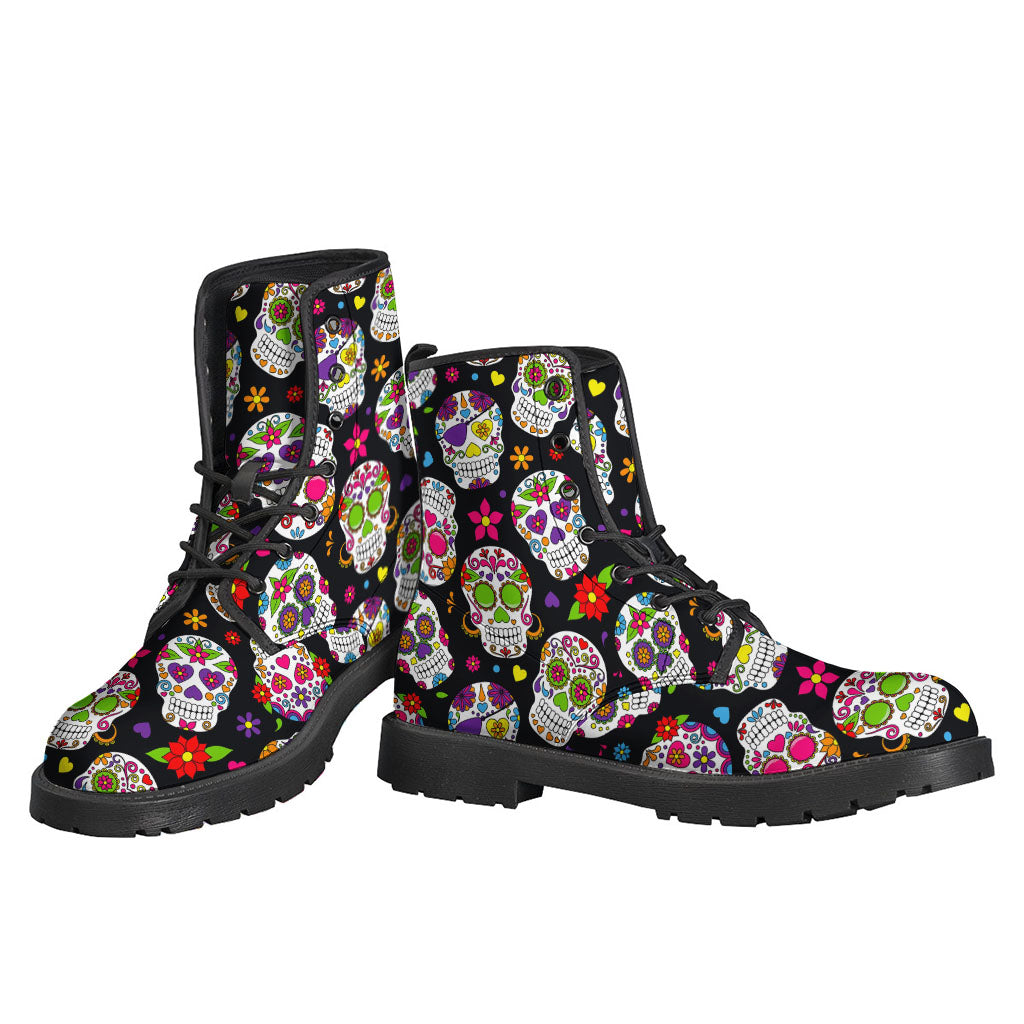 These hippie Leather Lightweight Boots are a perfect blend of style and comfort. Made from high-quality leather, these boots feature a unique sugar skull pattern print that adds a touch of edgy flair to any outfit. The lightweight construction makes them perfect for long days of walking or dancing at music festivals. With a classic lace-up design and durable sole, these boots are sure to become a staple in any hippie's wardrobe. Add a touch of bohemian chic to your look with these stylish and practical boots.
