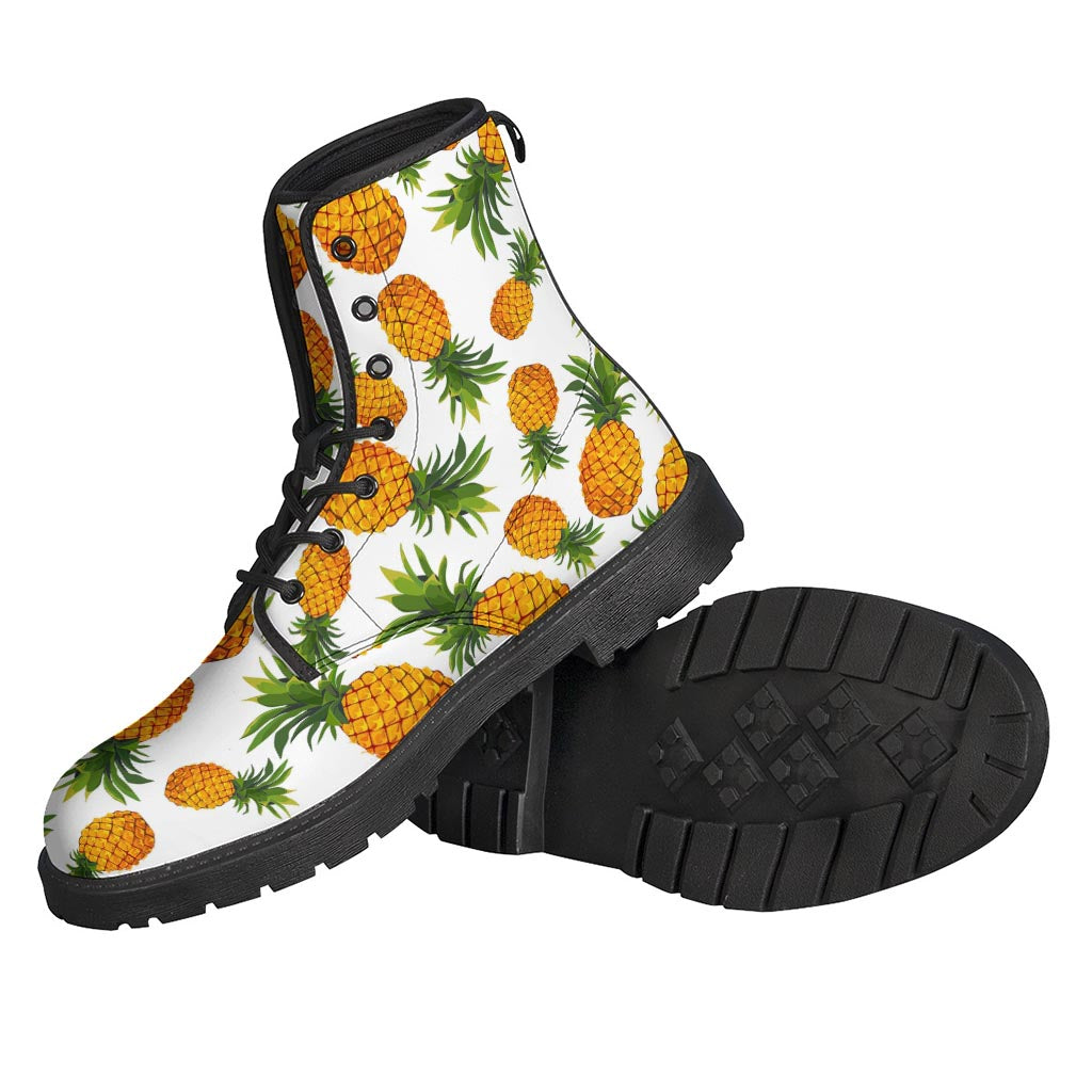 These hippies Leather Lightweight Boots are perfect for those who love to express their free-spirited style. The summer pineapple pattern print adds a fun and whimsical touch to these boots, making them a unique and eye-catching choice for any outfit. Made from high-quality leather, these boots are durable and comfortable for all-day wear. The lightweight construction makes them perfect for a bohemian lifestyle, whether you're exploring music festivals or dancing in the sun. Embrace your inner hippie with these stylish and comfortable boots that are sure to become a staple in your wardrobe.
