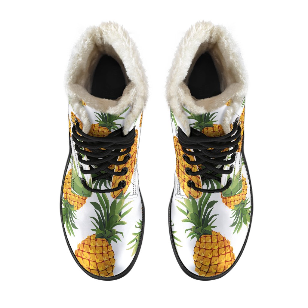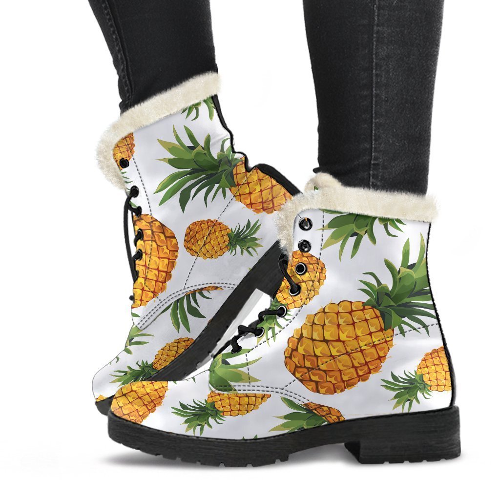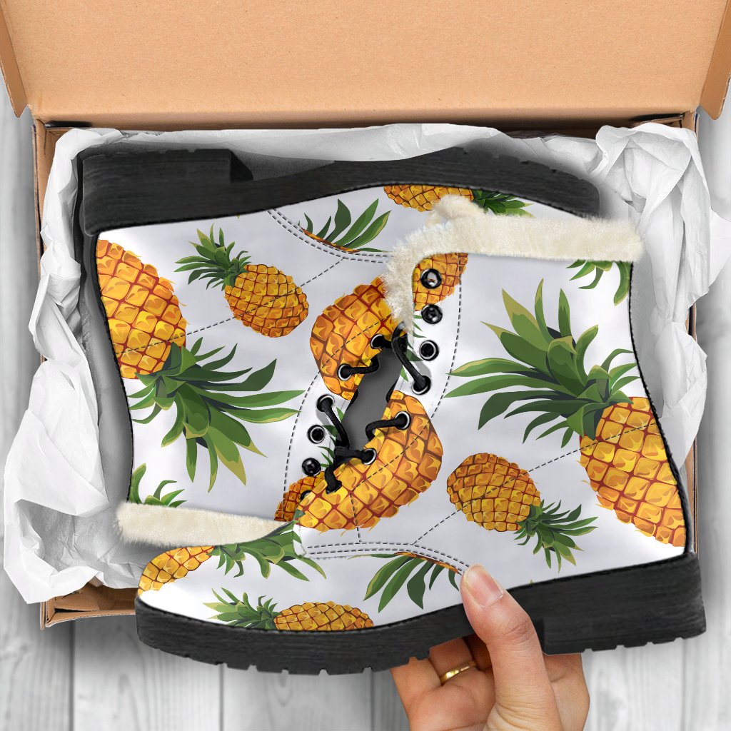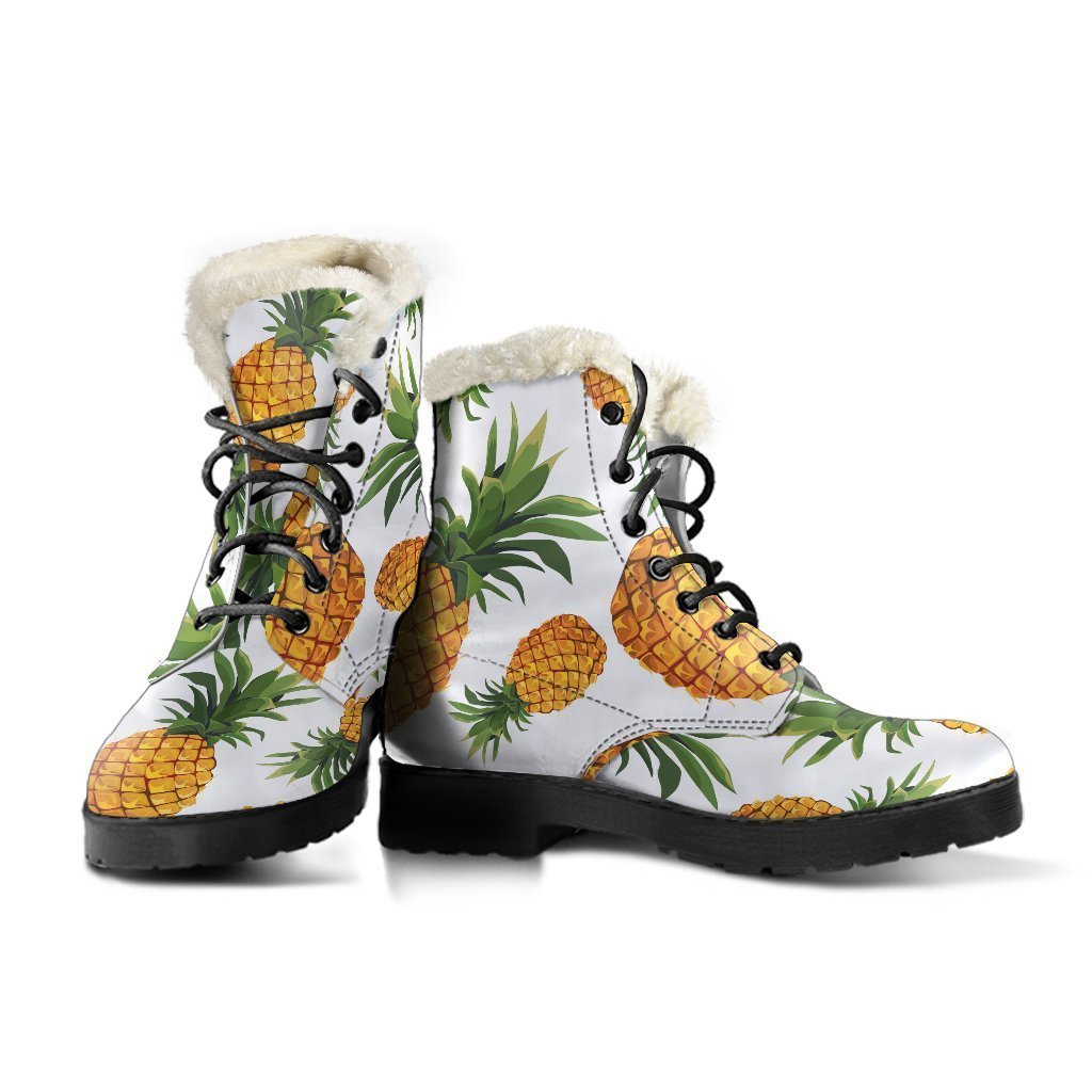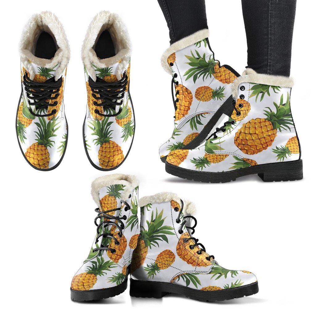 Embrace your inner flower child with these Summer Pineapple Pattern Print Faux Fur Leather Boots from GearFrost. These boots are perfect for hippies and free spirits who want to add a touch of Bohemian style to their wardrobe. The colorful pineapple print and faux fur lining make these boots a fun and unique addition to any outfit. With a comfortable leather construction and sturdy rubber sole, these boots are perfect for long days of festival-hopping or just hanging out in nature. Step out in style and channel your inner hippie with these fabulous faux fur leather boots.