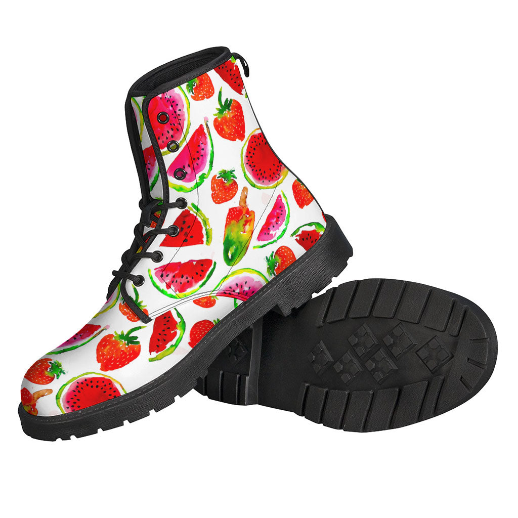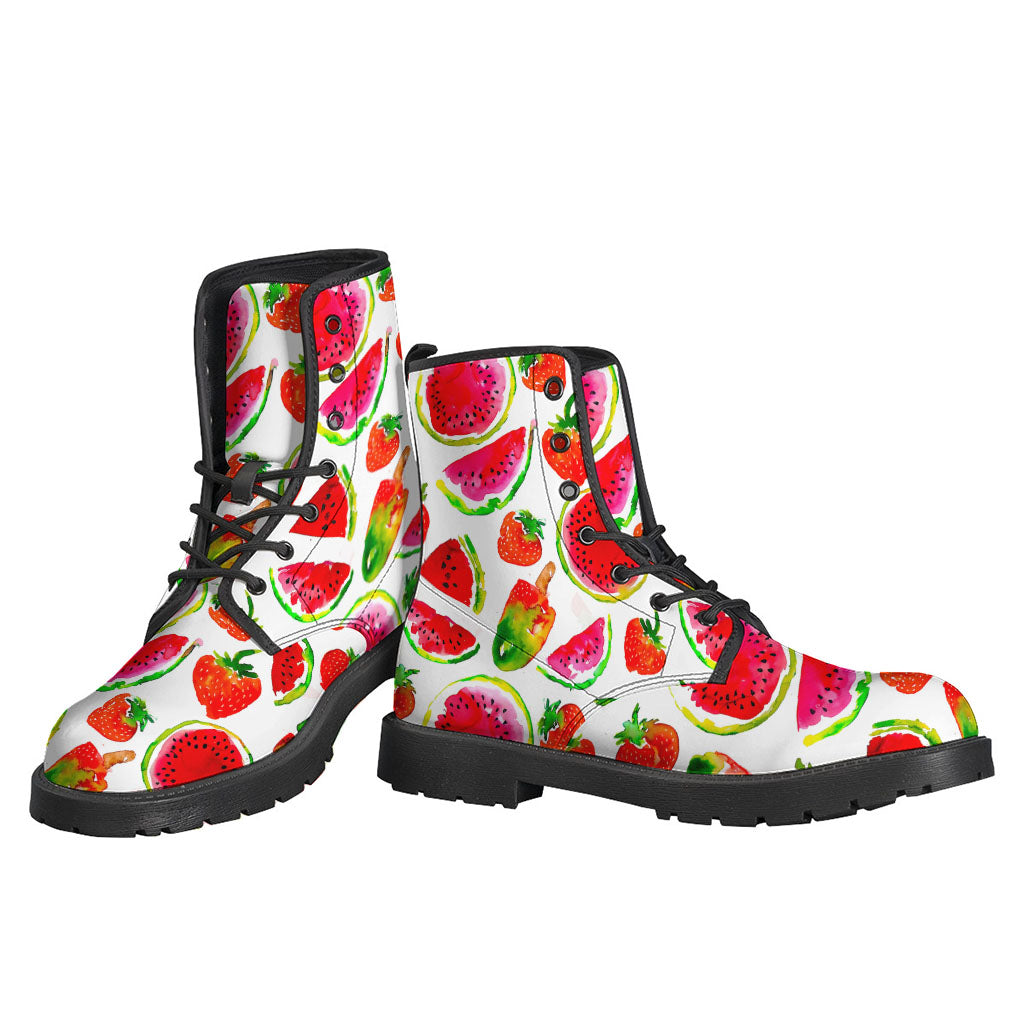 These hippie-inspired Leather Lightweight Boots are perfect for any free spirit looking to add a unique touch to their footwear collection. The boots feature a vibrant summer fruits watermelon pattern print that is sure to make a statement wherever you go. The high-quality leather material ensures durability and long-lasting wear, while the lightweight design keeps you comfortable all day long. Whether you're heading to a music festival, exploring the great outdoors, or just embracing your inner bohemian style, these boots are the perfect choice for hippies and free spirits alike. Add a pop of color and personality to your outfit with these stylish and eye-catching boots.