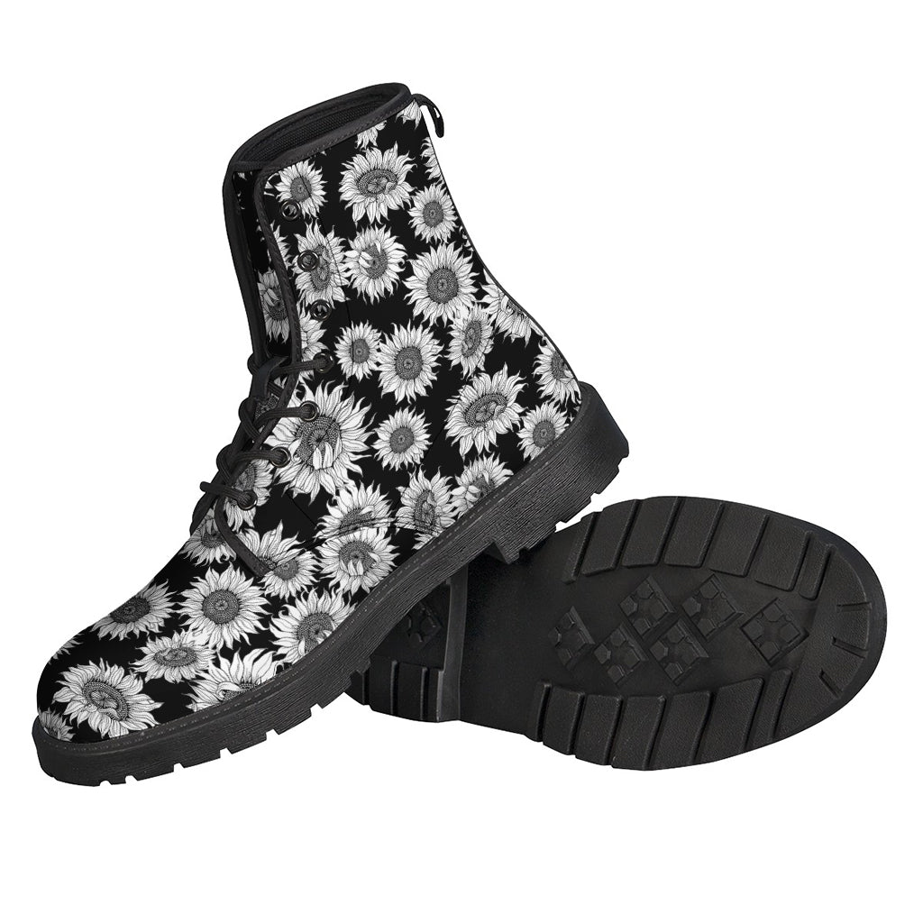 These hippie-inspired Leather Lightweight Boots are a must-have for any free-spirited individual looking to add a touch of bohemian style to their wardrobe. The black and white sunflower pattern adds a playful and retro feel to these boots, making them the perfect accessory for music festivals, outdoor adventures, or everyday wear. Made from high-quality leather, these boots are not only stylish but also durable and comfortable. The lightweight design ensures all-day comfort, while the sturdy construction provides support for any terrain. Whether you're dancing at a concert or exploring the great outdoors, these boots are sure to be a stylish and reliable choice for any boho lover.