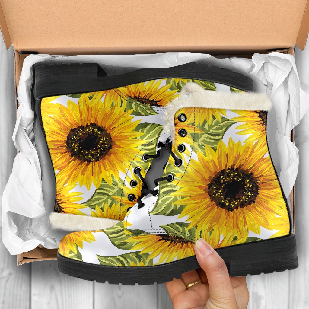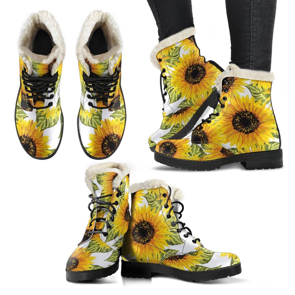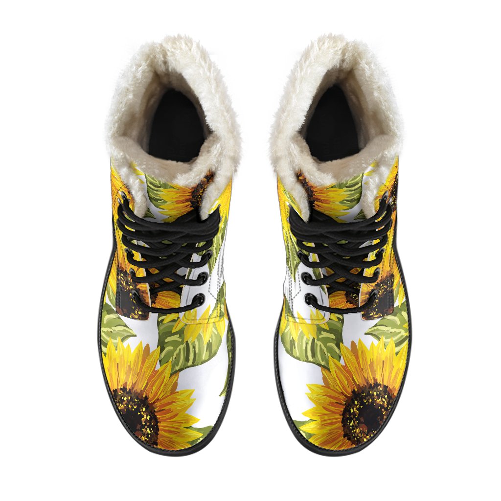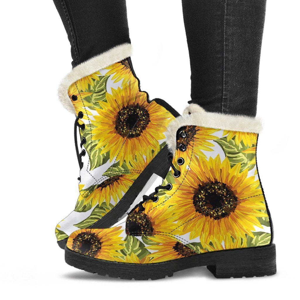 Embrace your inner hippie spirit with these unique Doodle Sunflower Pattern Print Faux Fur Leather Boots. The vibrant sunflower design adds a fun and whimsical touch to these stylish boots, perfect for expressing your free-spirited nature. The faux fur lining will keep your feet warm and cozy, while the durable leather construction ensures long-lasting wear. Whether you're heading to a music festival or just want to add a pop of personality to your everyday outfit, these hippie-inspired boots are sure to make a statement. Let your bohemian style shine with these one-of-a-kind Faux Fur Leather Boots!
