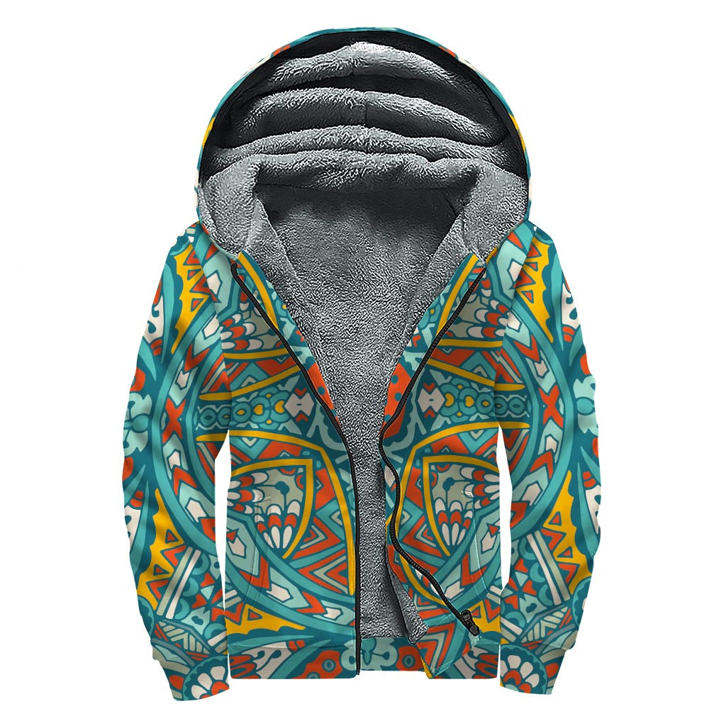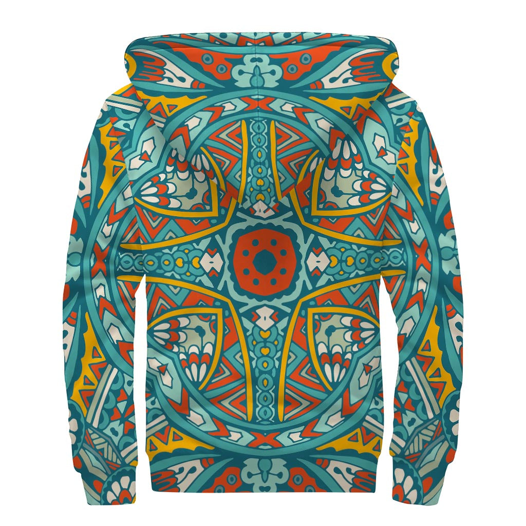Teal Bohemian Mandala Sherpa Zip Up: Groovy Style for Modern Hippies
