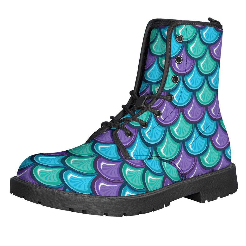 Teal Mermaid Scales Leather Lightweight Boots for the Free-Spirited Hippie