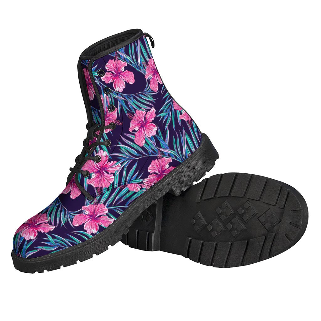 These Teal Tropical Hibiscus Pattern Print Leather Boots are the perfect footwear for those who love the hippie style. Made with lightweight leather material, these boots provide both style and comfort. The teal color and tropical hibiscus pattern give off a fun and carefree vibe, perfect for any bohemian fashion lover. Whether you're heading to a music festival, a day out in nature, or just wanting to add a touch of boho chic to your everyday outfit, these boots are sure to be a standout piece in your wardrobe. Embrace your inner hippie with these stylish and unique Leather Lightweight Boots.