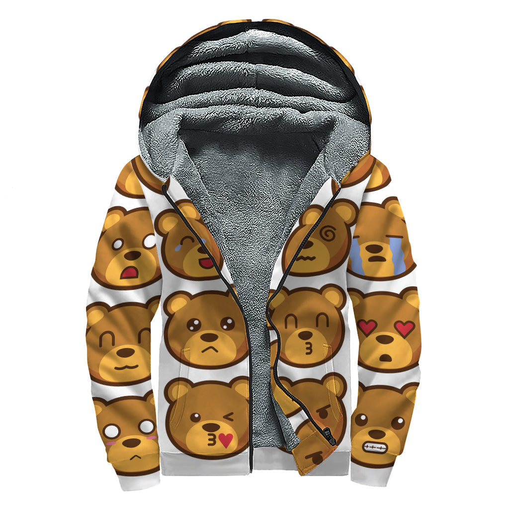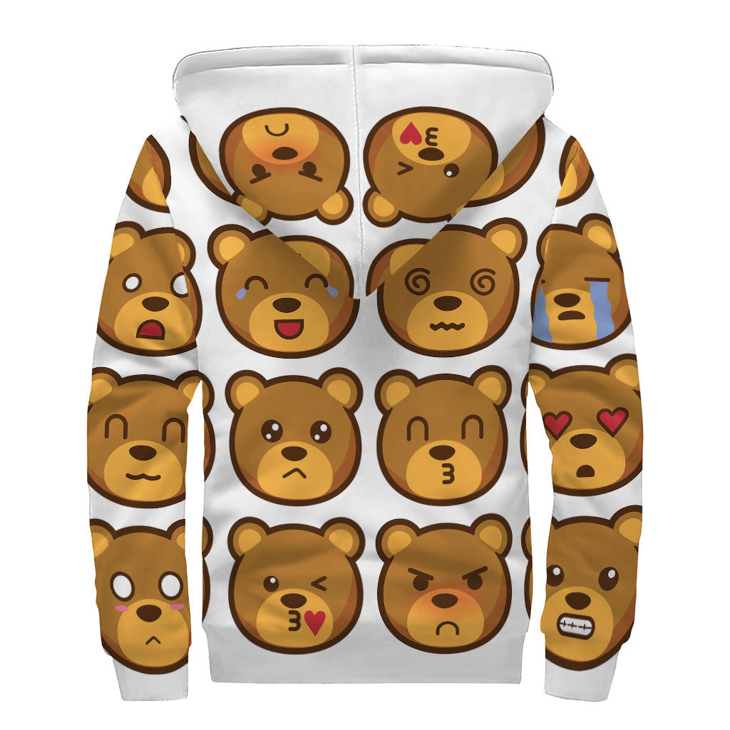 Get cozy and channel your inner hippie with this Sherpa Lined Zip Up Hoodie featuring a playful teddy bear emoji print. The super soft sherpa lining will keep you warm on chilly days, while the relaxed fit and zip-up front make it easy to throw on for a casual, bohemian look. Perfect for lounging around the house or heading out to a music festival, this hoodie is sure to become a staple in your hippie-chic wardrobe. Embrace your free spirit and spread good vibes wherever you go with this fun and funky hoodie.