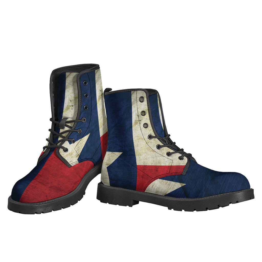 These Hippies Leather Lightweight Boots are a stylish and unique option for those who love to embrace their inner hippie spirit. Made from high-quality leather, these boots feature a Texas flag print design that adds a touch of Americana flair to any outfit. The lightweight construction of these boots makes them perfect for all-day wear, whether you're out exploring nature or dancing at a music festival. With a comfortable fit and durable construction, these boots are sure to become a favorite in your footwear collection. Embrace your free-spirited style with these eye-catching and versatile Hippies Leather Lightweight Boots.