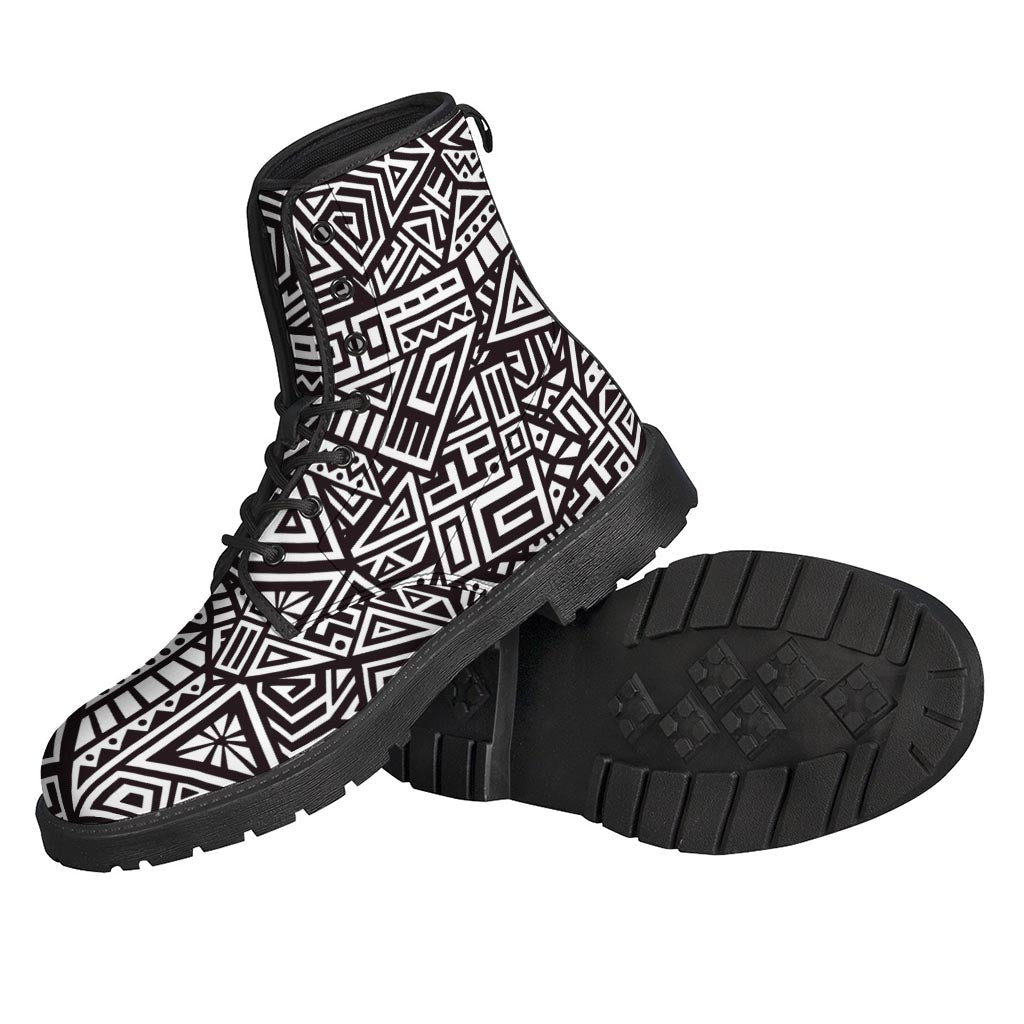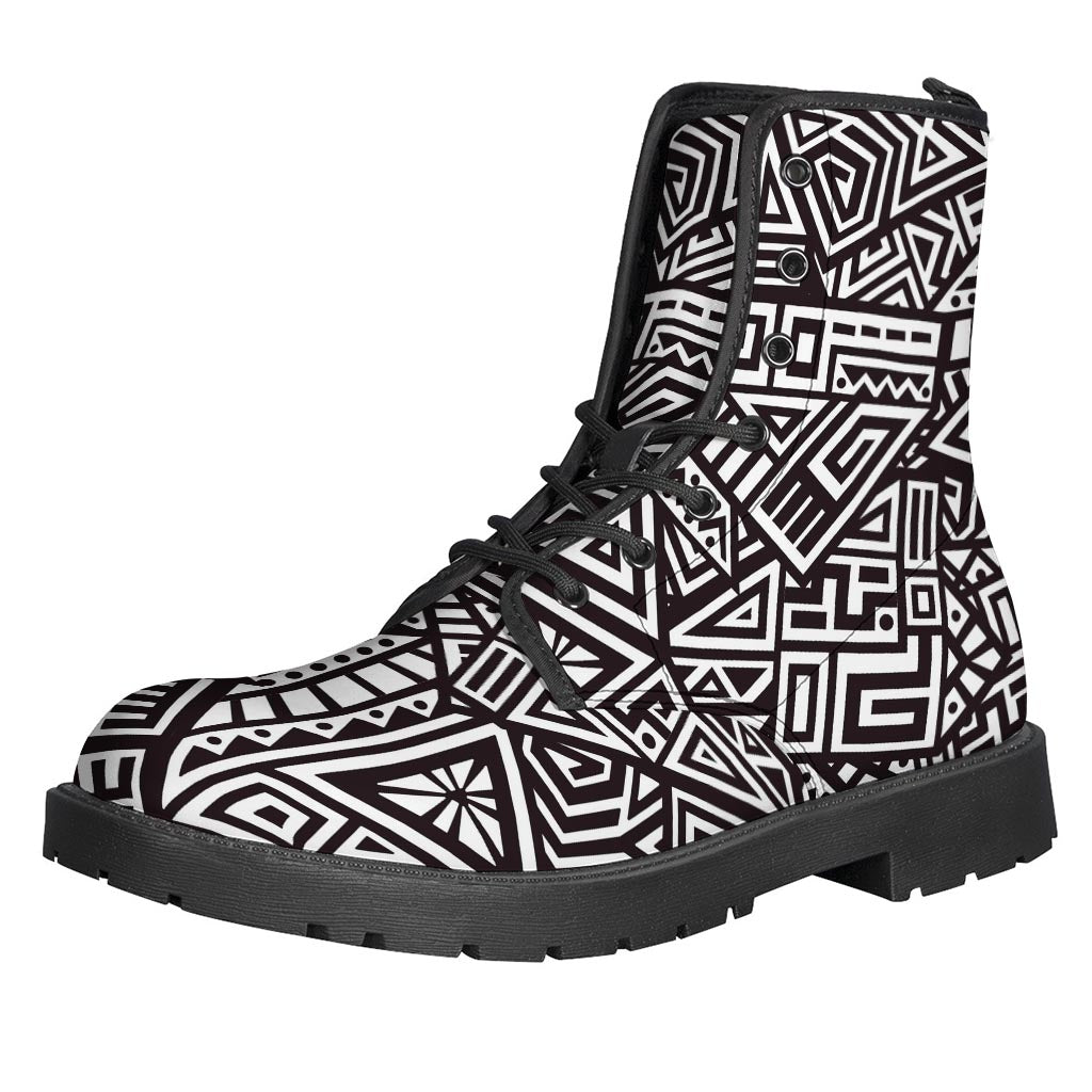 These Tribal Aztec Geometric Pattern Print Leather Boots are the perfect accessory for any modern-day hippie. Made from lightweight leather, these boots are comfortable and durable, perfect for long days of adventuring. The unique geometric pattern print on the boots adds a trendy and bohemian touch to any outfit. With a lace-up closure and a low heel, these boots are both stylish and practical. Whether you're heading to a music festival or simply want to add a hippie flair to your everyday look, these boots are sure to make a statement. Step out in style with these one-of-a-kind hippie leather boots.