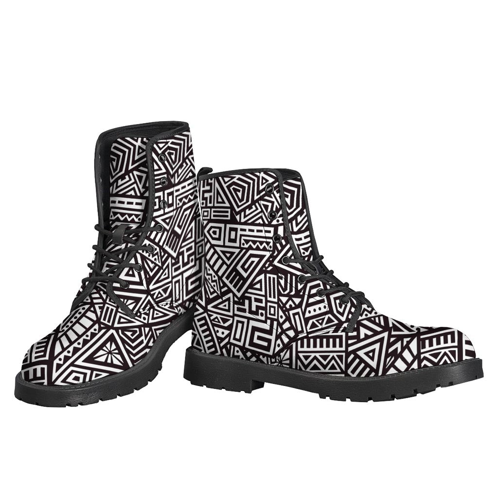 Trendy Hippies: Tribal Aztec Geometric Pattern Leather Boots