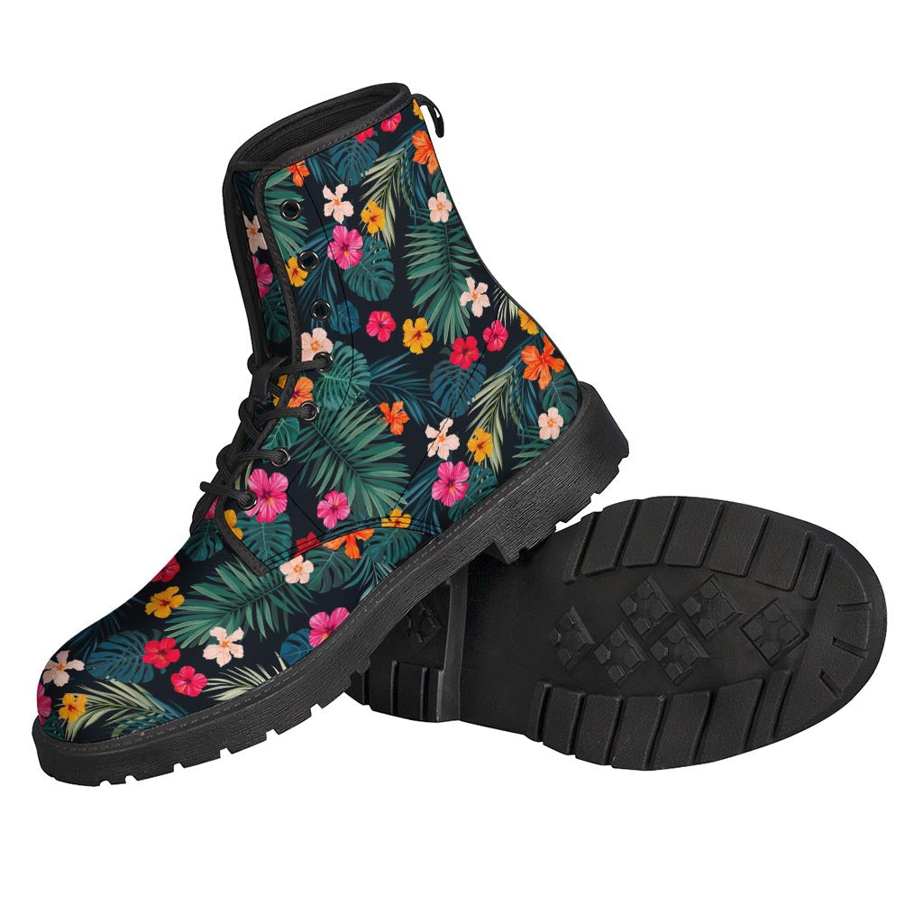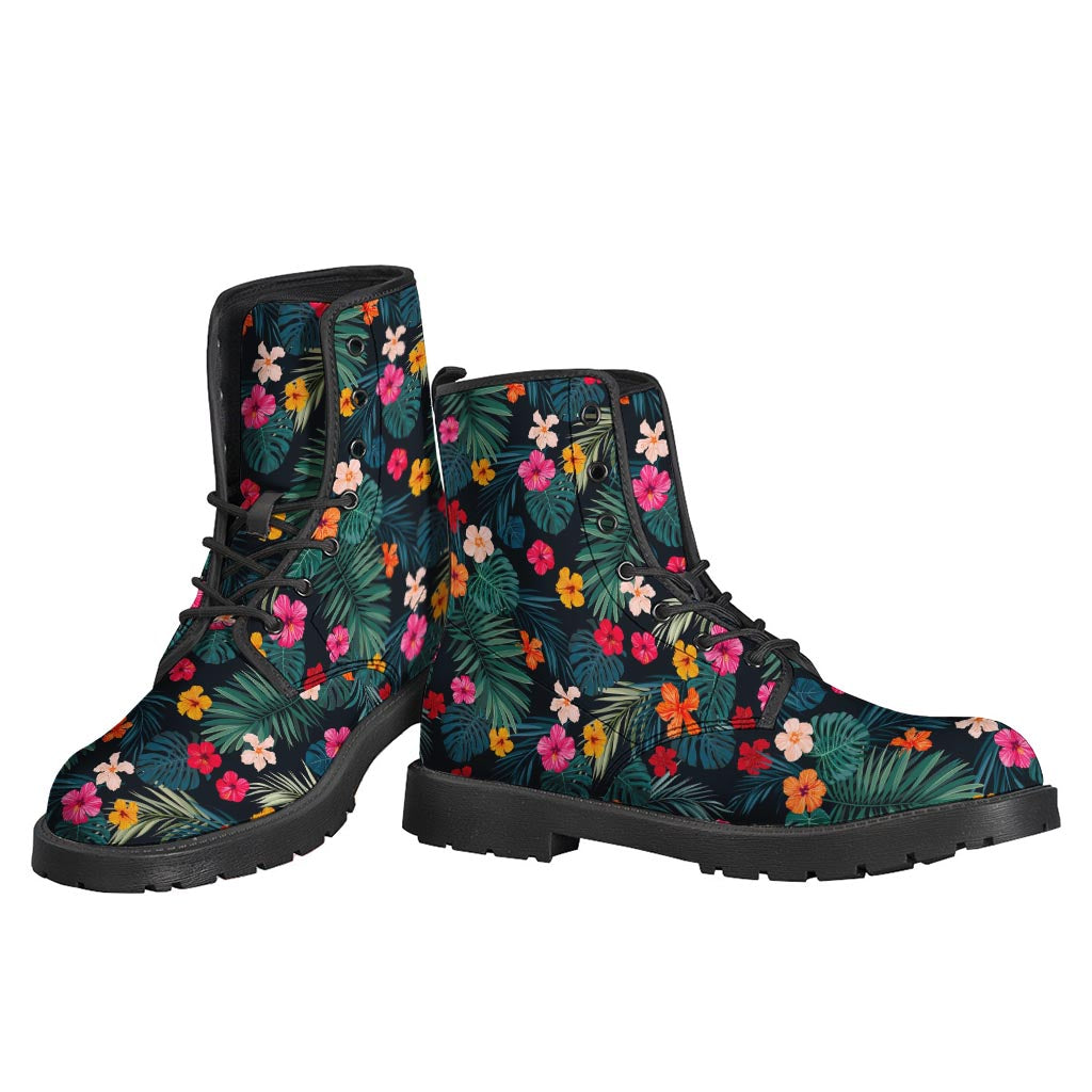 Tropical Flowers Hawaii Pattern Print Leather Boots for Free Spirited Hippies