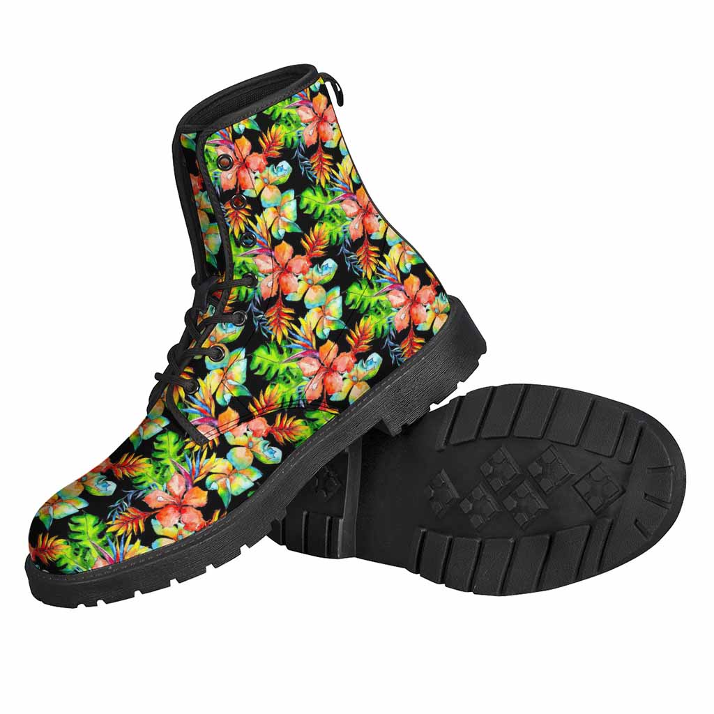 Tropical Hawaii Flowers Pattern Print Leather Lightweight Boots for Hippies