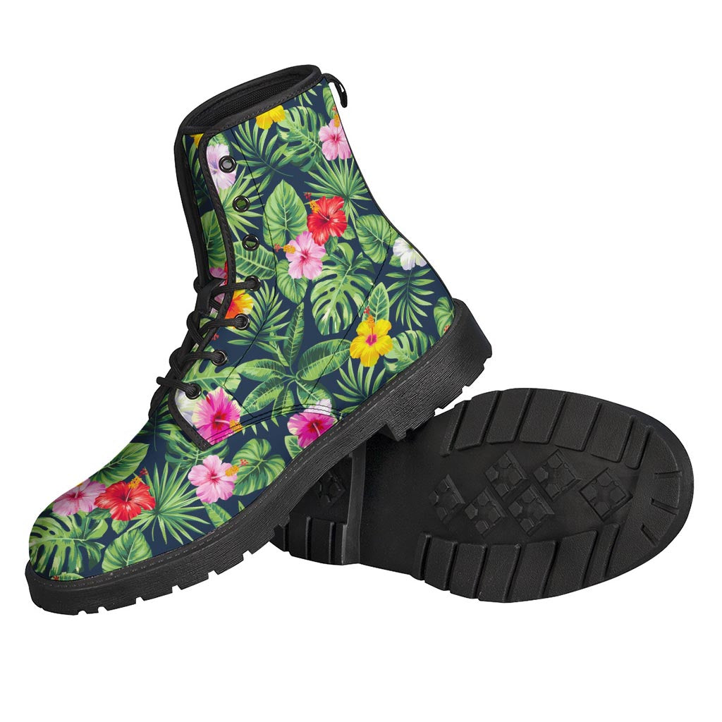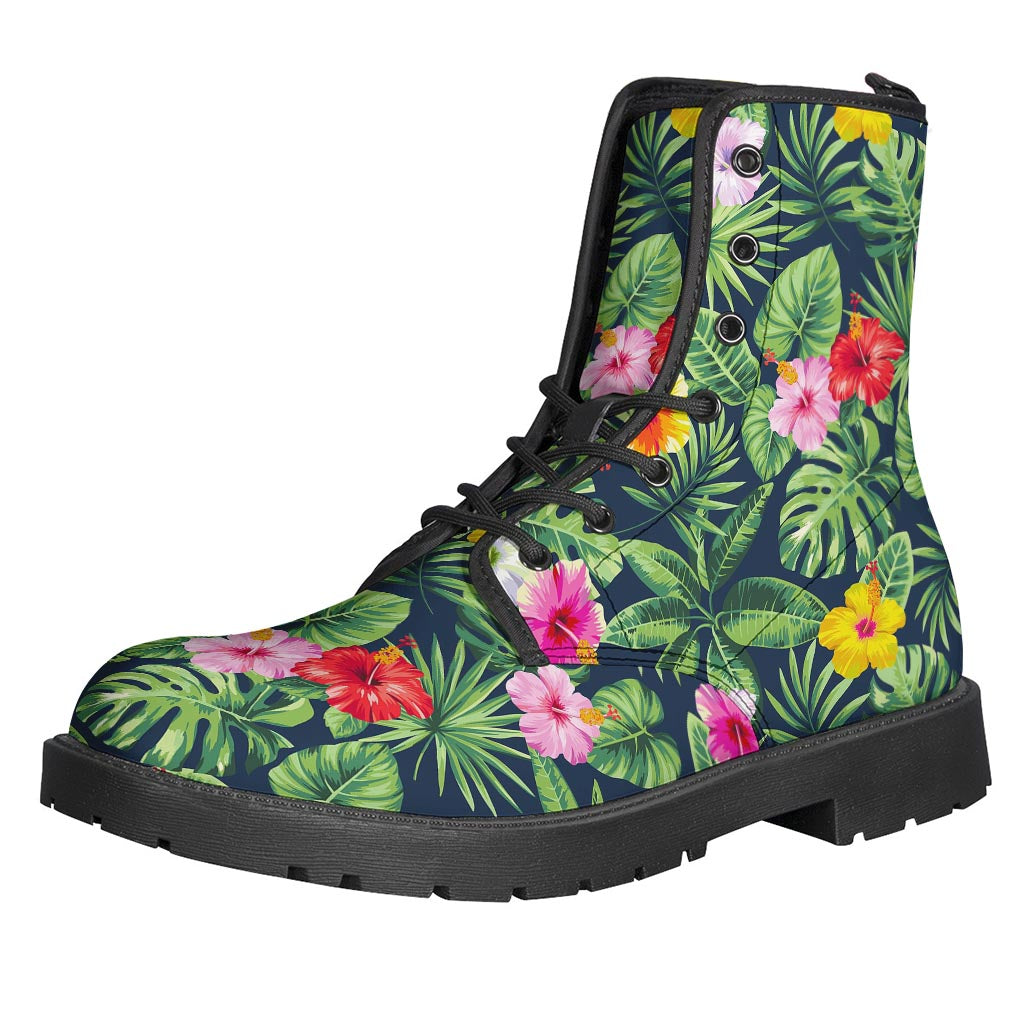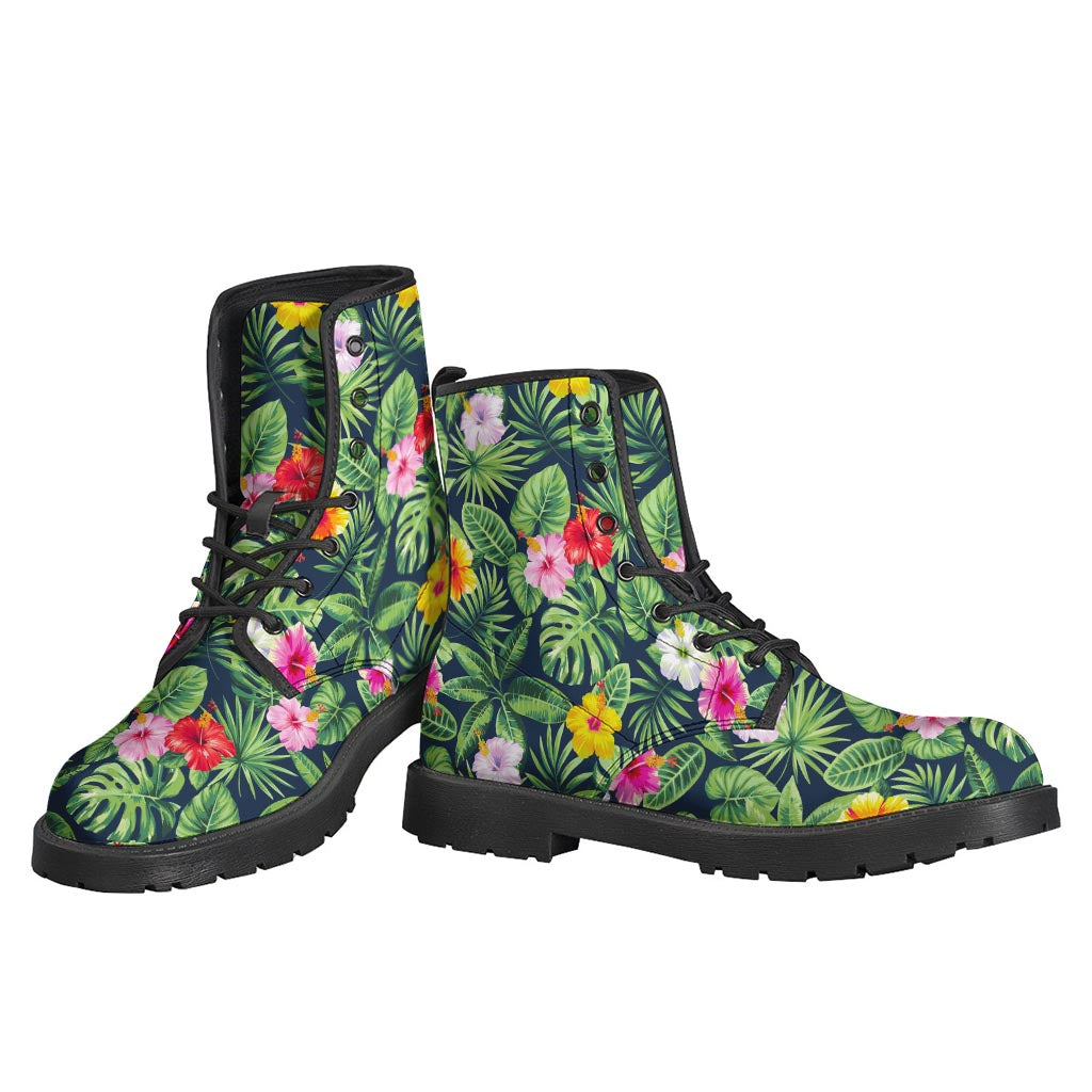 Tropical Hibiscus Flowers Pattern Print Leather Boots: The Ultimate Hippie Style