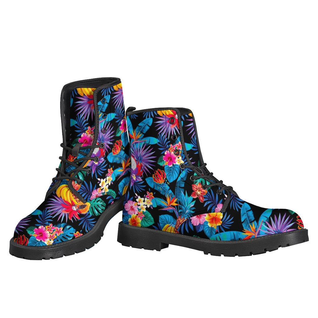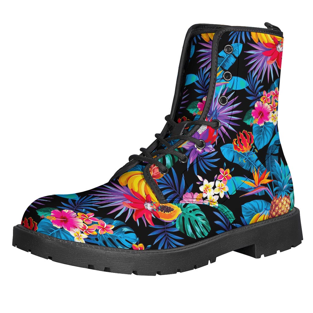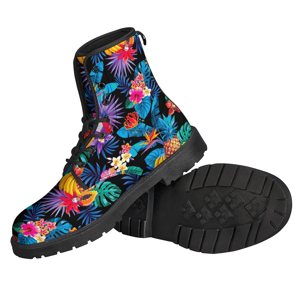 Turquoise Hawaiian Fruits Pattern Leather Boots for Stylish Hippies - 1