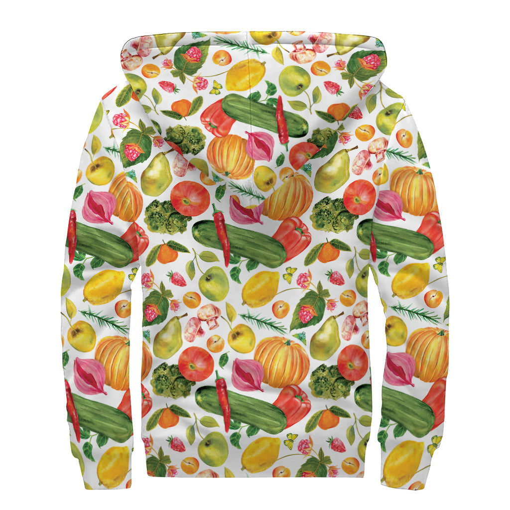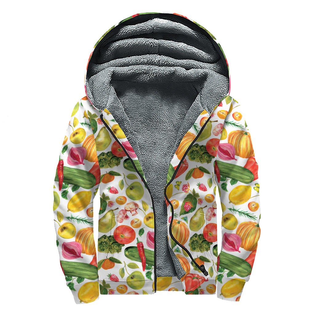 Get cozy and stay warm in this funky and unique hippie Sherpa Lined Zip Up Hoodie. Featuring a colorful print of vegan fruits and vegetables, this hoodie is perfect for nature-loving, free-spirited individuals who embrace a bohemian lifestyle. Made with soft Sherpa lining, this hoodie is perfect for chilly days and nights. Whether you're heading to a music festival, a farmers market, or simply lounging at home, this hoodie is sure to keep you feeling stylish and comfortable. Embrace your inner hippie with this one-of-a-kind piece.
