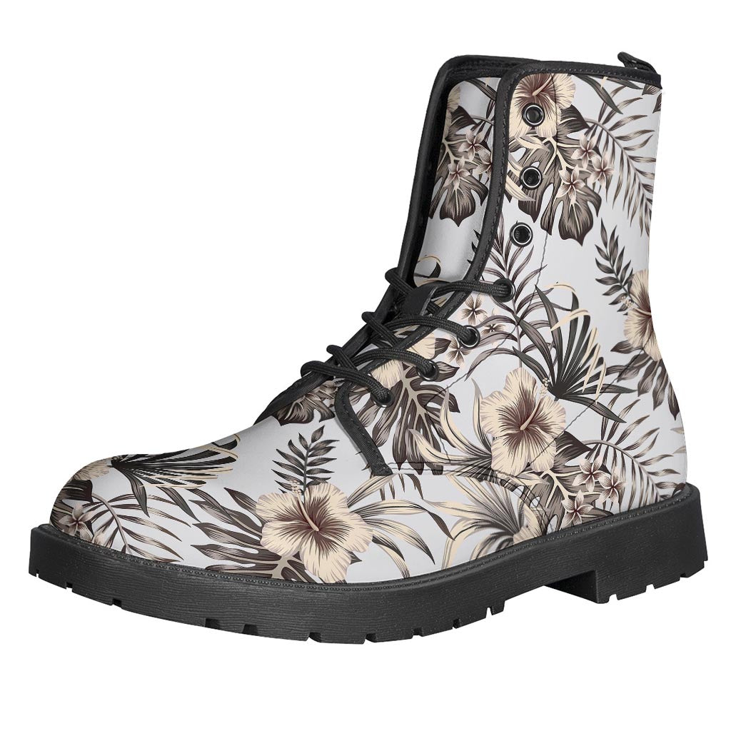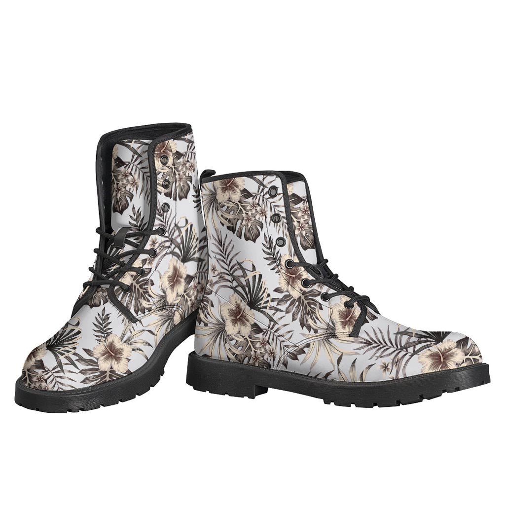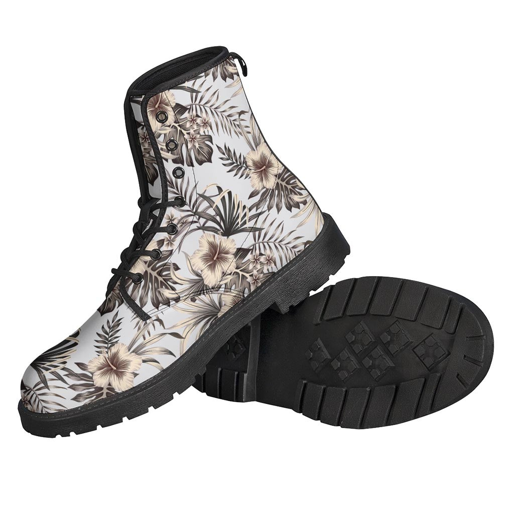 These Hippies Leather Lightweight Boots are the perfect blend of bohemian style with modern comfort. The vintage hibiscus plumeria pattern print adds a fun and vibrant touch to the classic leather boots. The lightweight design makes them ideal for all-day wear, whether you're out exploring nature or dancing at a music festival.